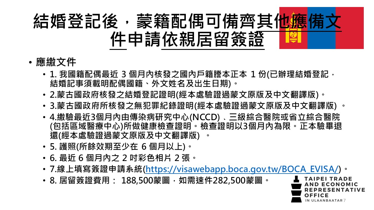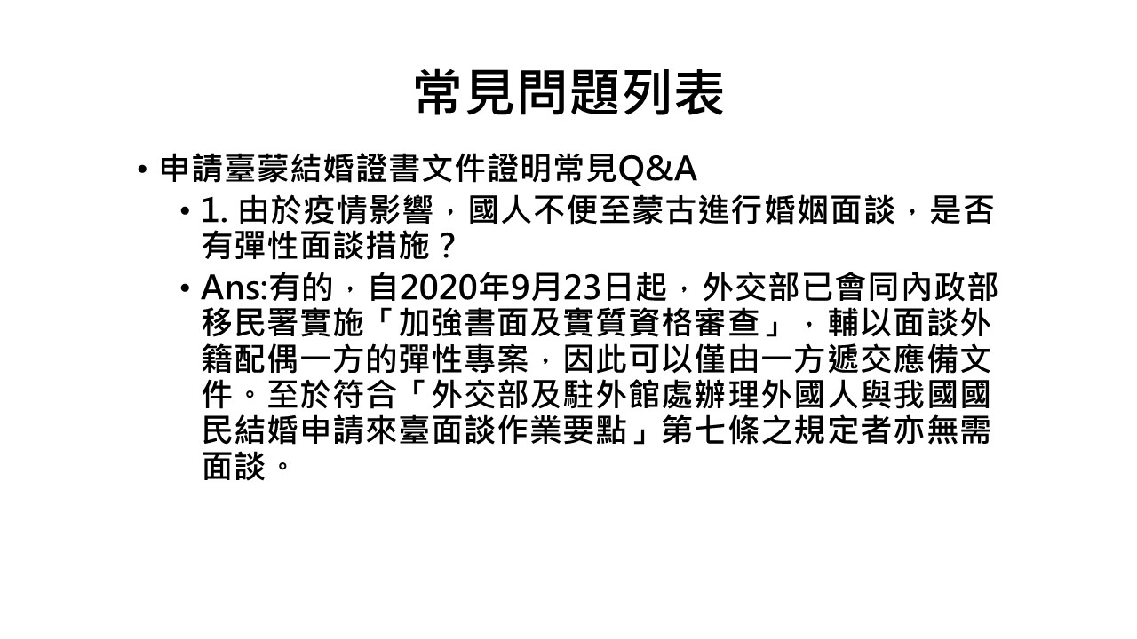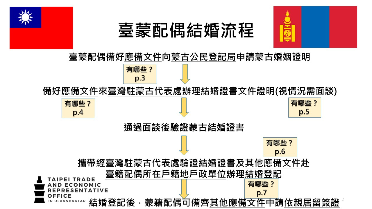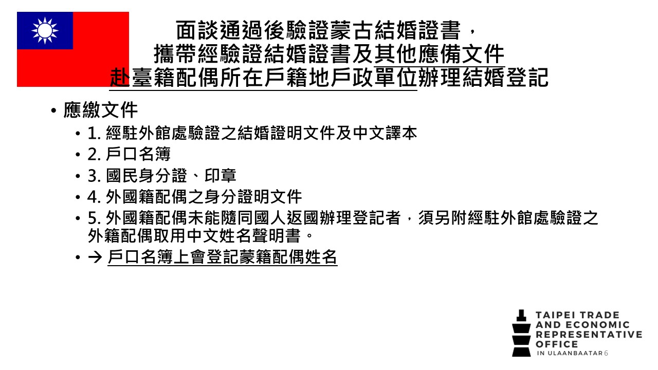 臺蒙結婚證書文件證明、程序及應備文件及常見Q&A - 駐烏蘭巴托台北貿易經濟代表處 Taipei Trade and Economic Representative Office in Ulaanbaatar ::: 跳到主要內容區塊