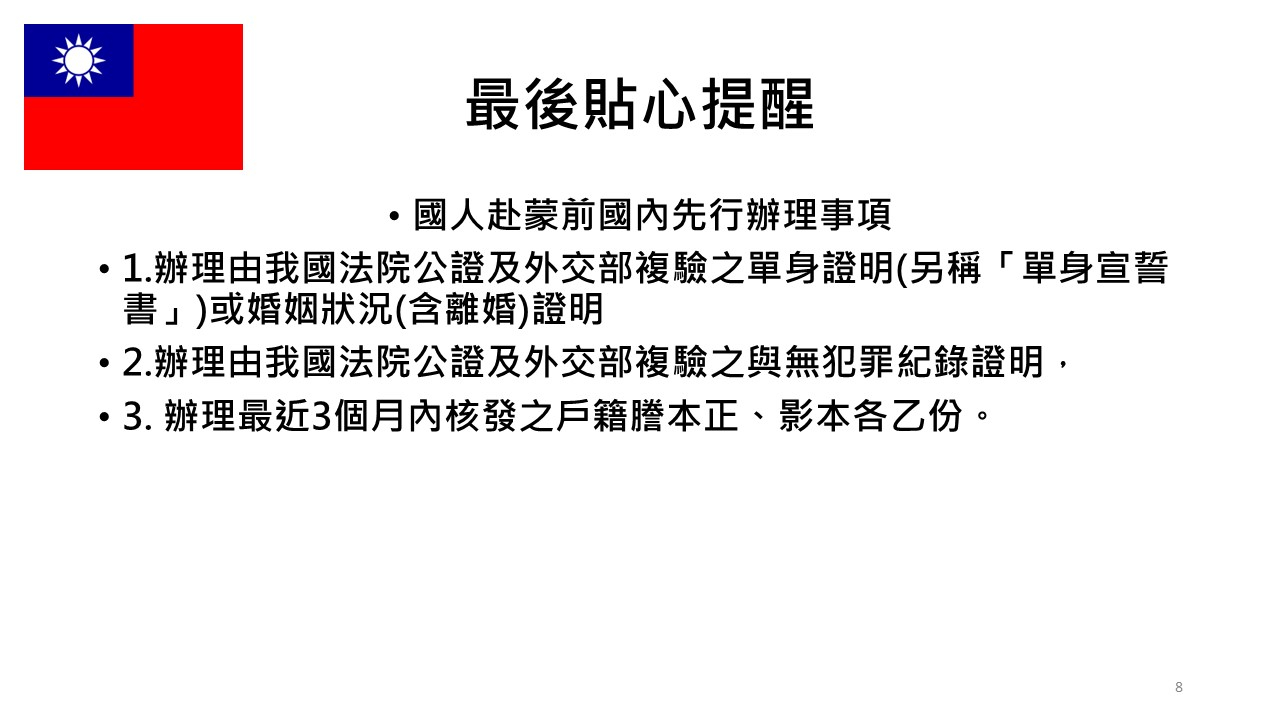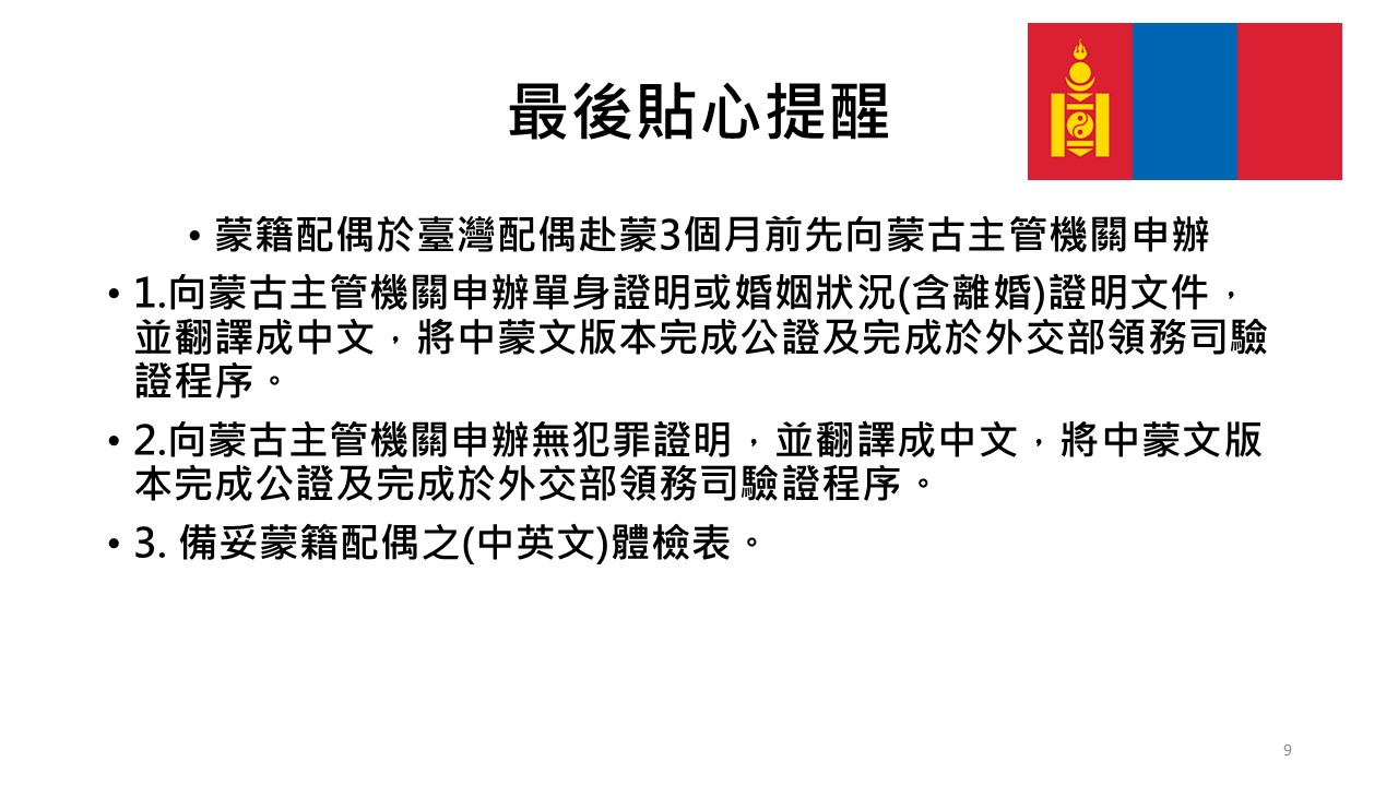 臺蒙結婚證書文件證明、程序及應備文件及常見Q&A