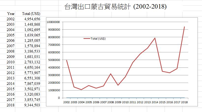 /Тайваниас МУ-д хийсэн экспортын статистик үзүүлэлт 2002-2018 оны байдлаар/