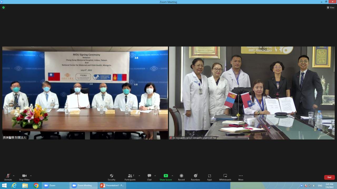 Монгол Улсын Эх хүүхдийн эрүүл мэндийн үндэсний төв болон Тайваний Линкоу Чан Гэн эмнэлэг 2022 оны 7-р сарын 6-ны өдөр алсын зайнаас цахим хэлбэрээр хамтран ажиллах санамж бичигт гарын үсэг зурлаа. Энэ нь цар тахал дэгдсэний дараах Тайваниас Монгол Улсад суугаа төлөөлөгчийн газрын дэмжлэгтэйгээр Линкоу Чан Гэн эмнэлэг байгуулж буй анхны хамтын ажиллагааны санамж бичиг болж байгаа тул ихээхэн ач холбогдолтой юм.