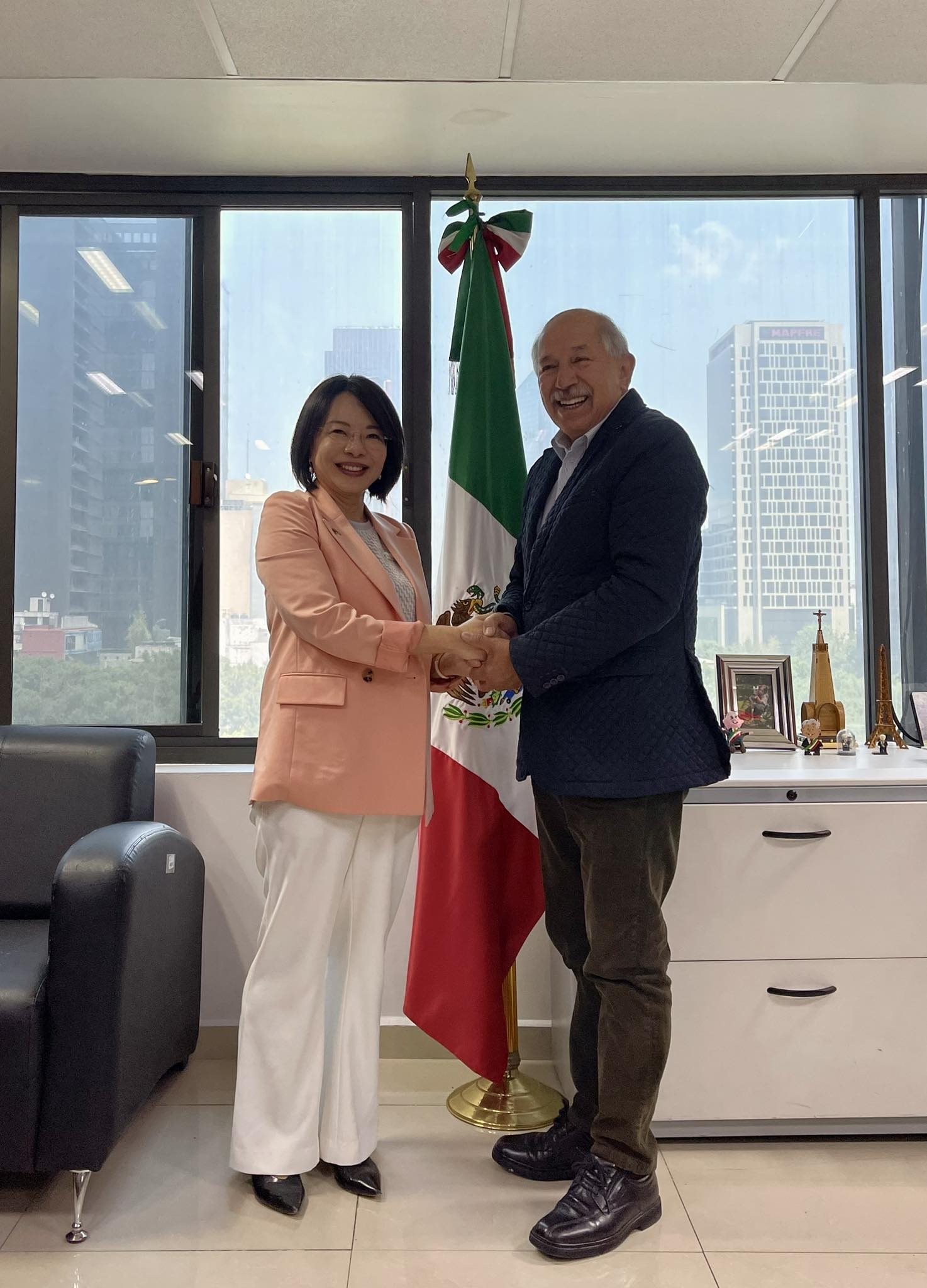 徐韶慧代表拜會墨西哥內政部國家聯邦與地域發展署(INAFED)署長 Raúl Armando Quintero。Q署長歡迎徐代表再次回到墨西哥履新,表示去年和本處建立關係以來,短短幾個月內已與我國共同辦理「捐贈樂器協助Hidalgo、Oaxaca及墨西哥州地方市鎮成立音樂教室」和「賑濟Hidalgo州豪雨水患受創市鎮家戶」等合作計畫,無論該署和受惠民眾們,都非常感謝來自台灣的愛心,希望未來雙方在既有友好基礎上,持續強化合作,幫助更多弱勢族群。