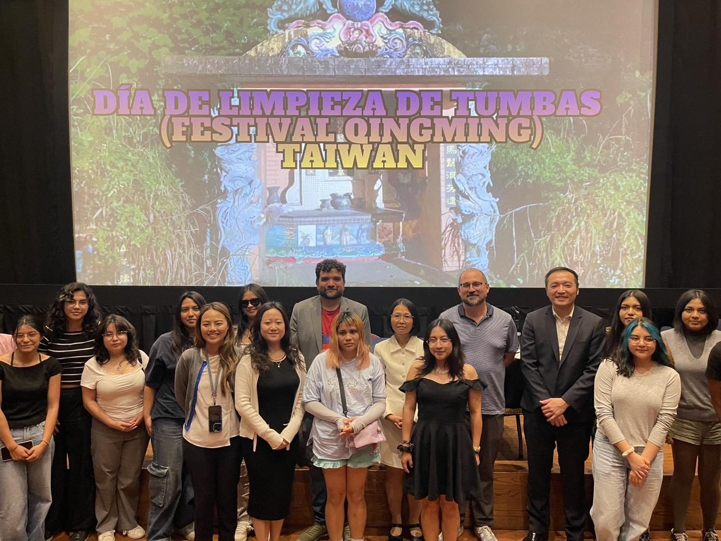 放映結束後,藍秘書翠華與現場觀眾分享台灣的傳統習俗-清明節(掃墓節),介紹此節日為家人祭拜祖先的重要節日。