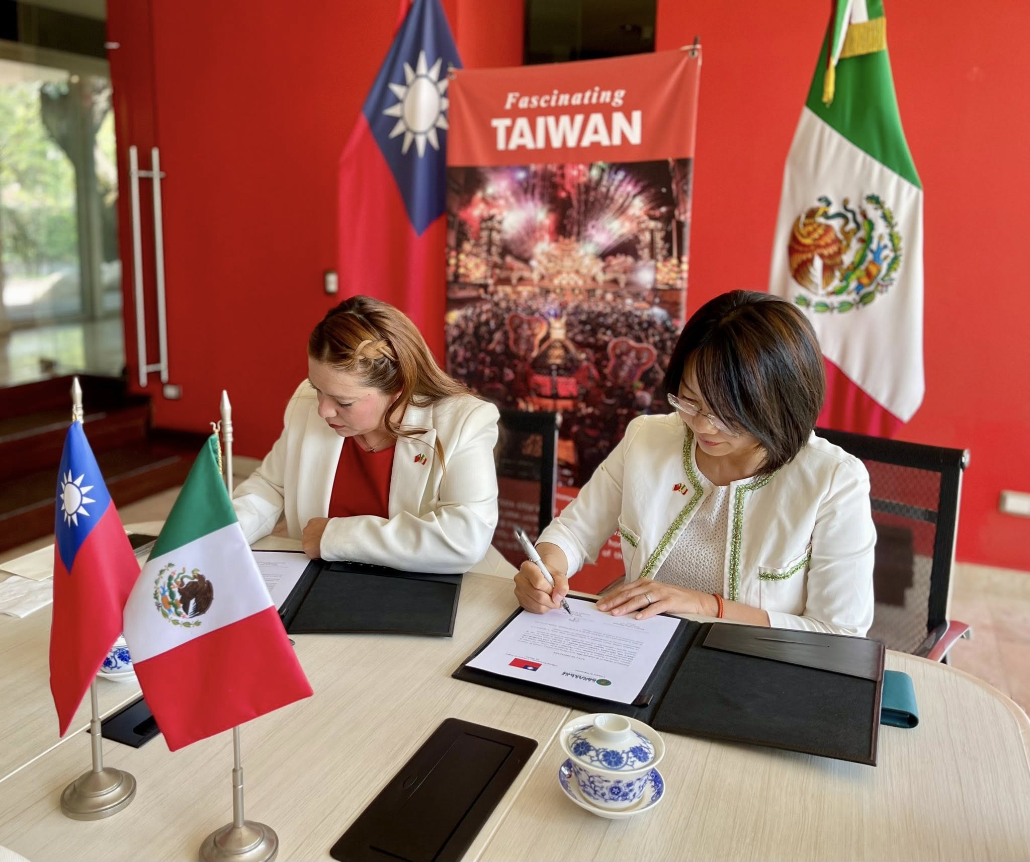 徐代表韶慧與墨西哥 聯邦眾議員Josefina Anaya Martínez簽署我國政府支持A議員「捐贈墨西哥州 弱勢族群身障輔具 計畫」合作紀事錄。