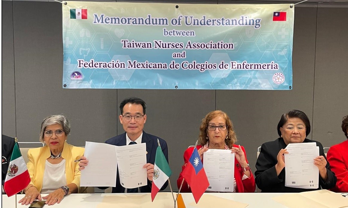 「臺灣護理學會」(TWNA)理事長陳靜敏昨(20)日與「墨西哥聯邦護理學會」會長María Teresa Maldonado舉行線上簽署合作備忘錄儀式,並由駐墨西哥代表鄭正勇及墨國參議院副議長Ana Lilia Rivera擔任見證人。