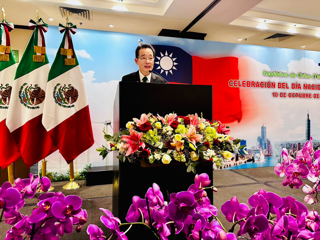 駐墨西哥代表處於10月4日晚間假墨西哥市巴塞羅飯店(Hotel Barceló)盛大舉行「慶祝中華民國112年國慶酒會」,由鄭正勇大使主持,現場墨國聯邦及地方政要、國會參眾議員、各國駐墨使節團、工商、學術、文化及僑界等友我人士共約300人出席。