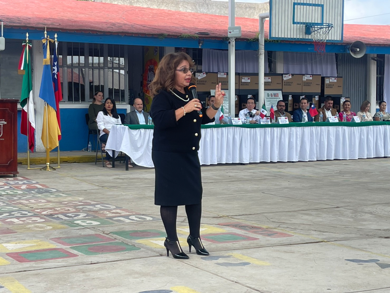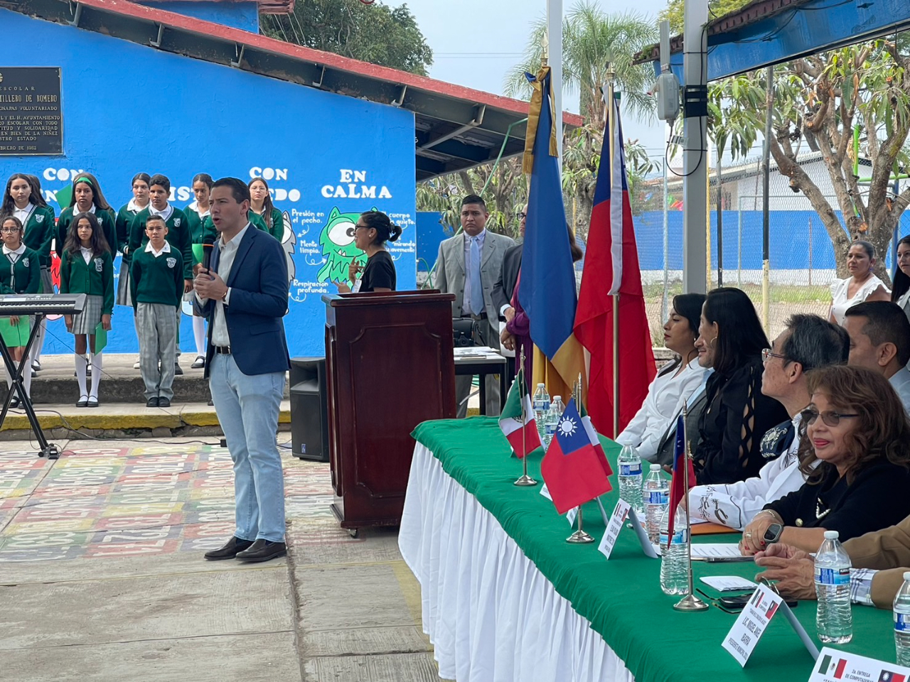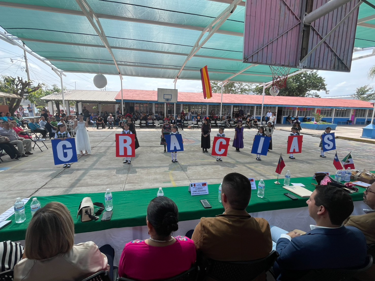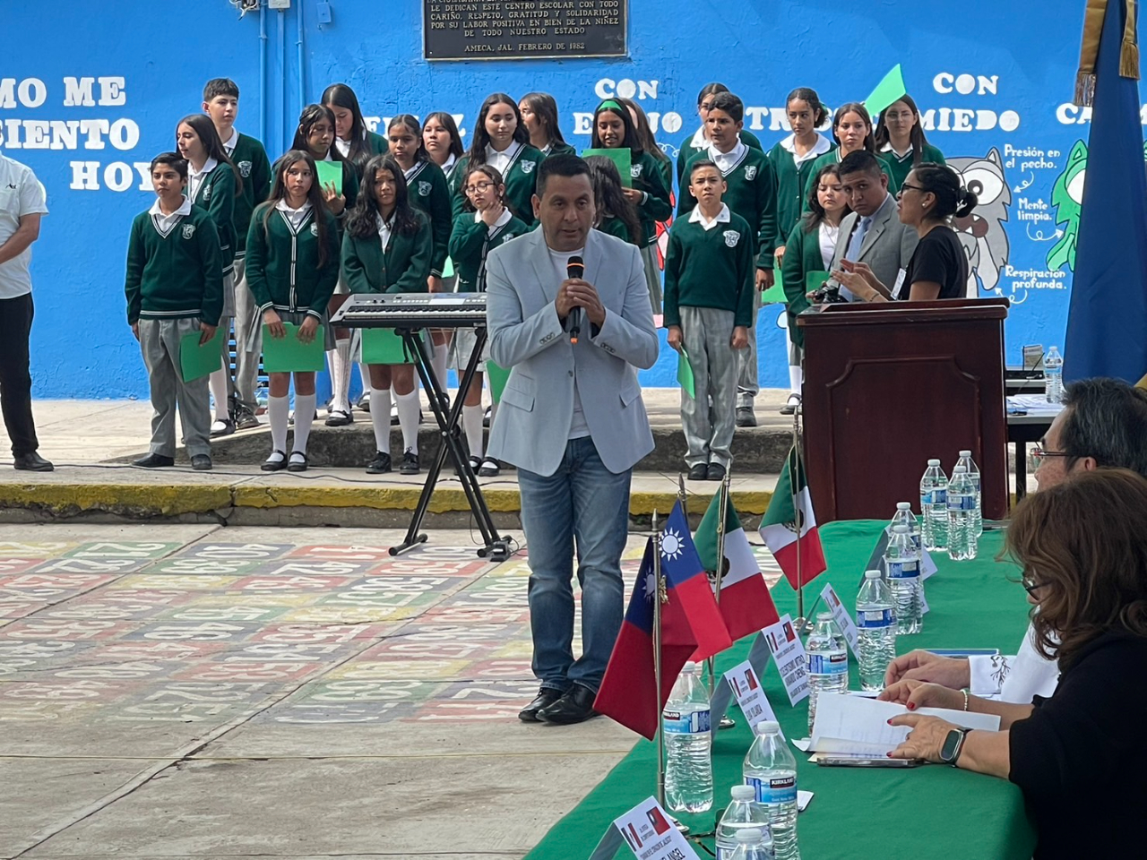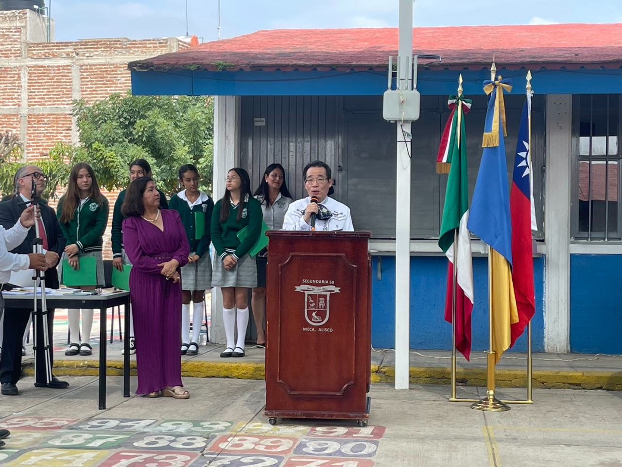 儀式首先由唱頌墨西哥和臺灣兩國國歌揭開序幕,接著,卡斯蒂耶若小學校長阿美莉卡(Christian América)代表受贈學校致詞感謝,並推崇臺灣是崇尚教育和科技發展的亞洲之心。梅德拉諾副廳長代表致詞感謝鄭代表再度蒞訪哈里斯科州,帶來更多援助和希望;奎薩達市長上臺感謝鄭代表慨贈電腦提升教育品質,並表示臺灣已經常駐在他的心中。伊巴爾拉市長則感謝臺灣愛心,讓科技不再是遙不可及的特權;哥梅茲秘書長則籲請受惠師生多加運用並妥善保管來自臺灣優質的「華碩電腦」。市議員和其他受贈校方代表,也相繼上臺感謝臺灣,並稱他們以身為臺灣之友為傲。最後,瑪汀內絲主席致詞表示感謝能與鄭代表結識並擔任「墨臺友好小組」主席,另外有榮幸於今(2023)年4月應邀前往臺灣參訪,親身見證我國頂尖的教育水準、健保體系和其他各領域的進步發展實況,因此,也勉勵在場學生效法臺灣刻苦堅韌的精神勤奮向學,未來申請臺灣獎學金赴臺深造。