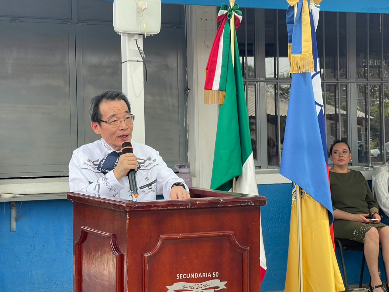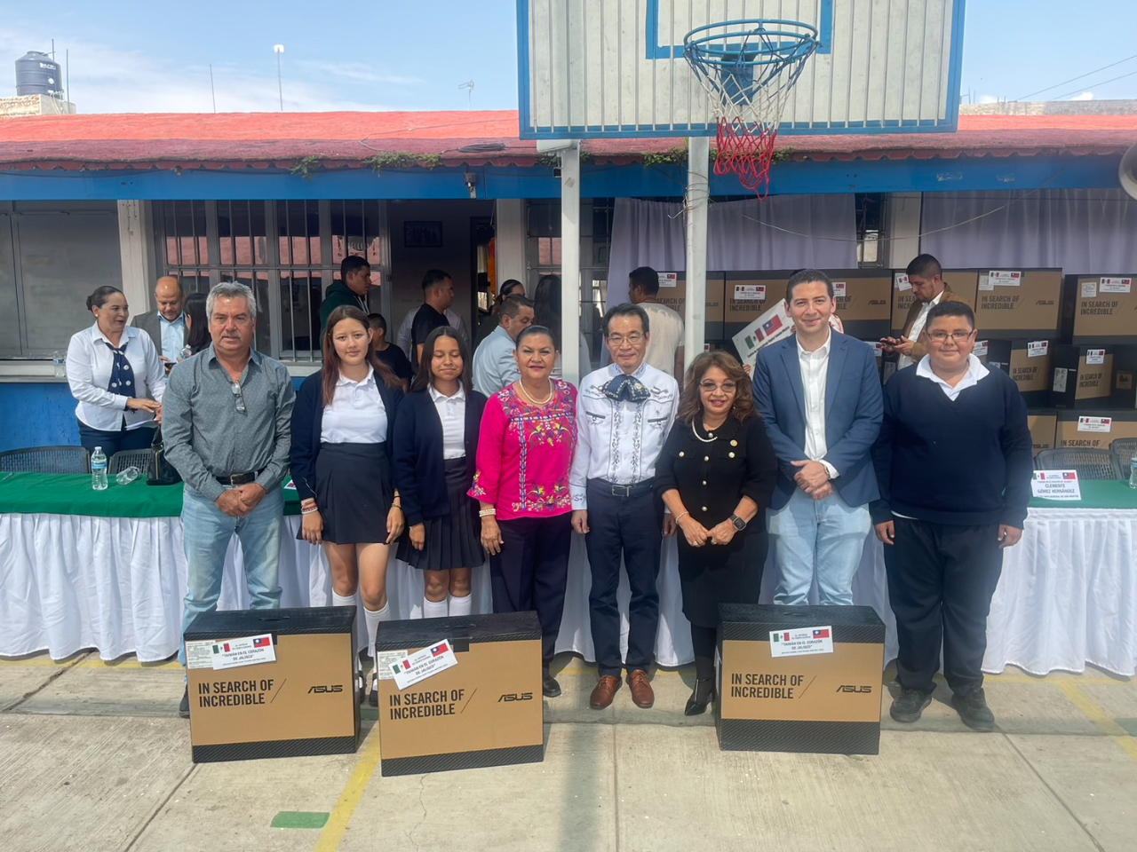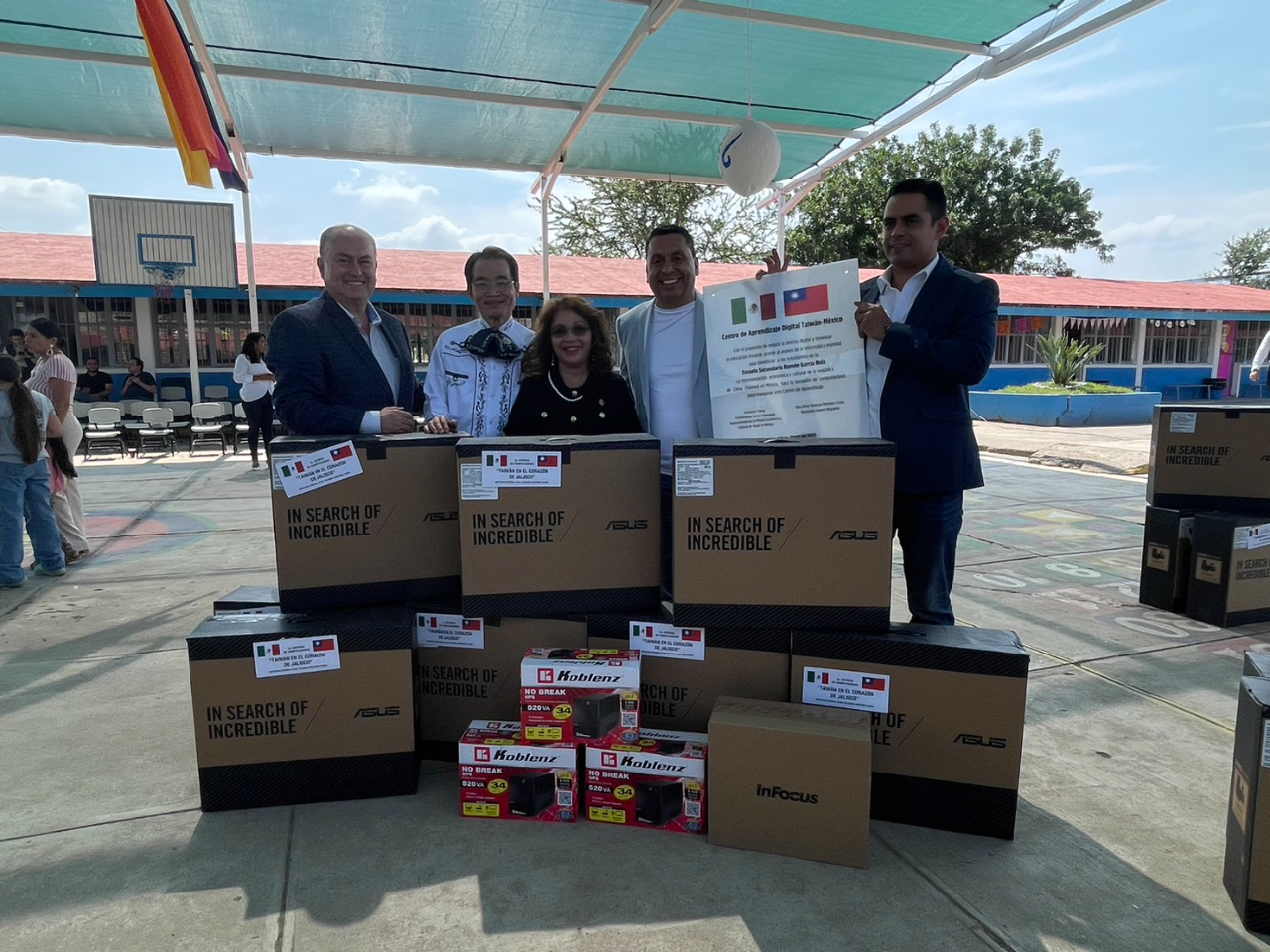 鄭代表致詞感謝瑪汀內絲主席牽成,讓他有機會第二度將來自臺灣的愛心送到阿美卡市,接著宣介我國執全球牛耳的高規晶片、電動車和人工智慧等科技產業的發展現況,表示臺灣樂願與墨國和其他崇尚民主、自由與人權的國家分享科技成果,攜手共創繁榮的未來。另外,鄭代表概以闡述臺墨去(2022)年貿易總額高達155億美元、我國逾300家廠商在墨投資為墨西哥創造超過7萬個就業機會、臺墨順應北美「近岸外包」現勢強化雙邊交流等情形。最後,鄭代表以阿美卡市市徽所象徵的人民勤奮不懈意涵作結,期盼臺墨兄弟之邦,能夠持續在各方面緊密合作,獲得在場人士熱烈迴響。之後,鄭代表會同瑪汀內絲主席將物資遞交給各受贈方代表,並前往卡斯蒂耶若小學以我國捐贈的「華碩電腦」所設立的電腦教室,主持剪綵與揭牌儀式。