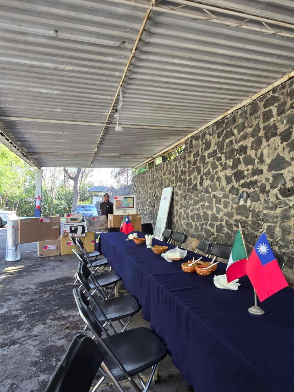 典禮結束後Hernández大隊長在園區設宴邀請鄭大使共進早餐,背景循環播放我國台語經典老歌。今天的贈交活動不僅在園區放置我國旗,捐贈物資上都貼上了台灣國旗及「COOPERACIÓN TAIWÁN」圖示,展現「Taiwan can help」的精神及效益。