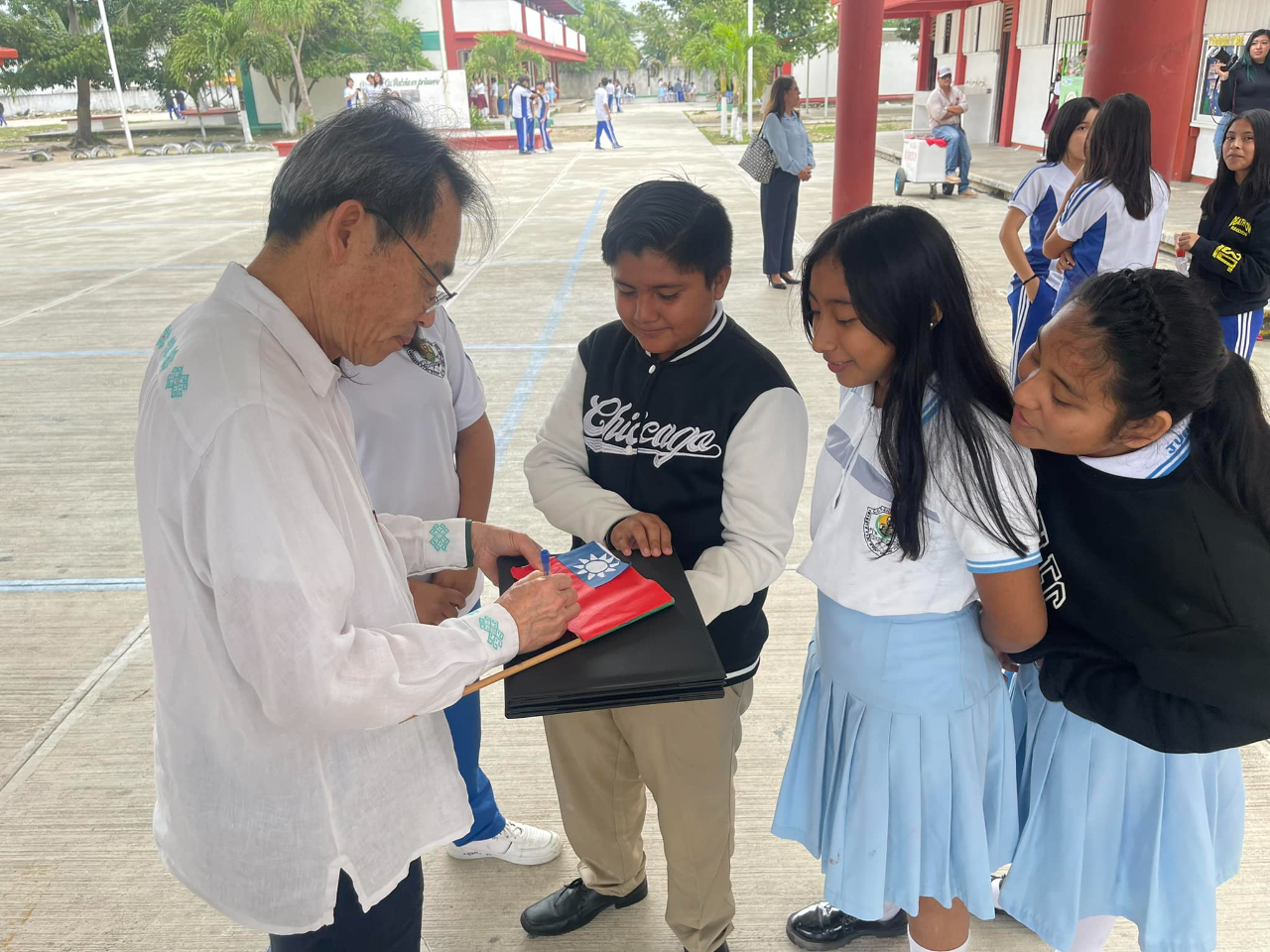 受惠的學生們為了表達感謝,除了用音樂、詩歌和舞蹈表演,向鄭大使展示津塔那羅州充滿加勒比海風情的生命力之外,學生代表也是有備而來,用慷慨激昂的演說,介紹台灣的史地文化、政治制度、民主社會、半導體和高科技產業的高度發展,以及我國和理念相近國家進行人權外交等現況,最後更演奏《月亮代表我的心》,手持蔡英文前總統、孫運璿和鄧麗君等人的肖像,述說在他們心目中最具代表性的台灣人物,讚揚台灣是墨西哥國家發展的典範,並再次感謝台灣鄭大使。