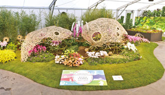 Una exhibición vibrante de bambú, flores y plantas que promueven la Exposición Mundial de la Flora Taichung se observa en el pabellón de la Asociación de Desarrollo de Floricultura de Taiwan en la feria Floralien Gent 2016 en Bélgica. (Foto cortesía de la Asociación para el Desarrollo de la Floricultura de Taiwan)
