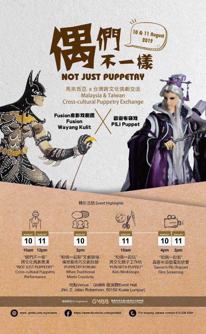 本次為期二天(810日及11)的推介禮系列活動,邀請到臺灣霹靂布袋戲來馬交流,除了霹靂布袋偶劇之木偶表演之外,尚加碼cosplay 舞者於開幕現埸演繹偶劇人物之風華。此外更規劃了傳統藝術的發揚與創新的<和偶一起聊>文創論壇、<和偶一起玩>跨文化親子工作坊丶<和偶一起看>霹霹布袋戱電視精品劇特映版--『刀說異數-啞子的哭聲』及布袋戲電影『奇人密碼-古羅布之謎』。另主辦單位也邀請到馬來西亞著名皮影戲劇團FUSION WAYANG KULIT 交流演出,並進行跨文化親子工作坊等節目。