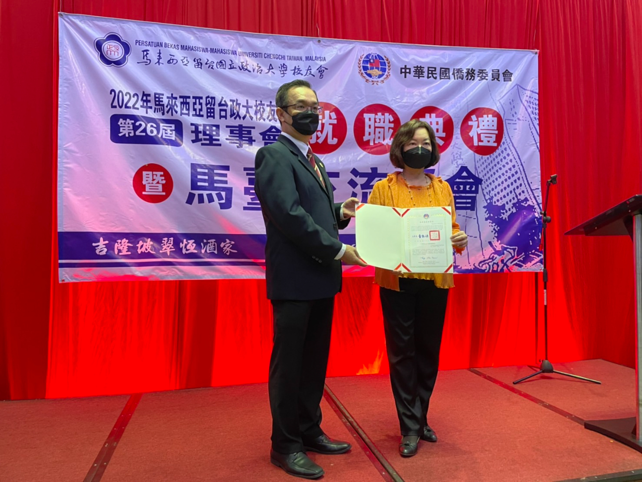 駐馬來西亞臺北經濟文化辦事處洪大使慧珠於4月8日晚間出席馬來西亞留臺國立政治大學校友會「第26屆理事會就職典禮暨馬臺交流餐會」,場面熱絡。