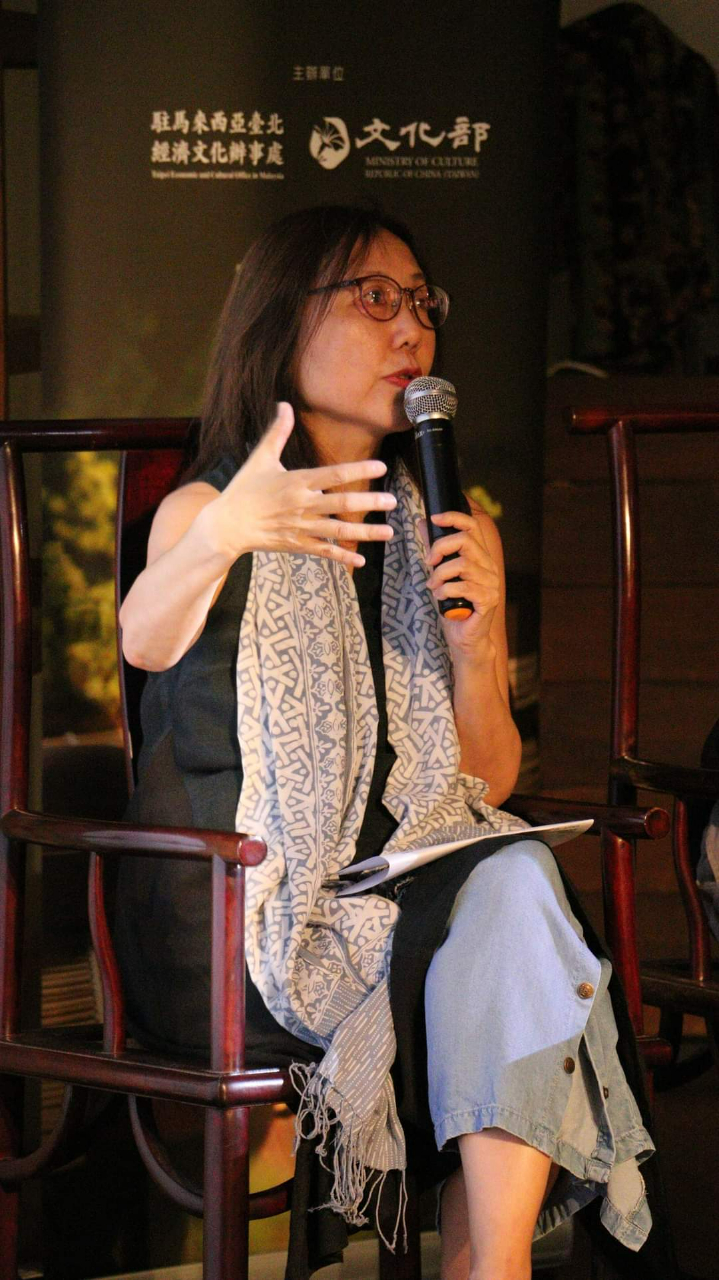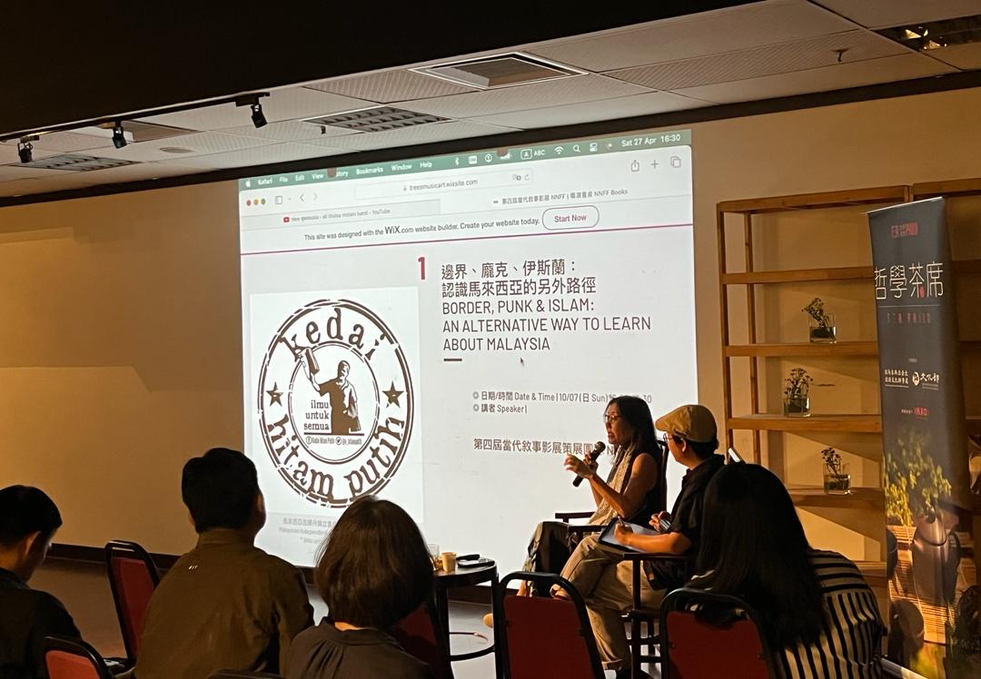 鍾適芳在講座中分享她從創立音樂品牌大大樹音樂圖像、辦理流浪之歌音樂節、拍攝紀錄片《移動邊界兩百年》到「非遊記」展覽,從音樂、影像跨界到展覽,始終環繞著一個主軸──邊界。