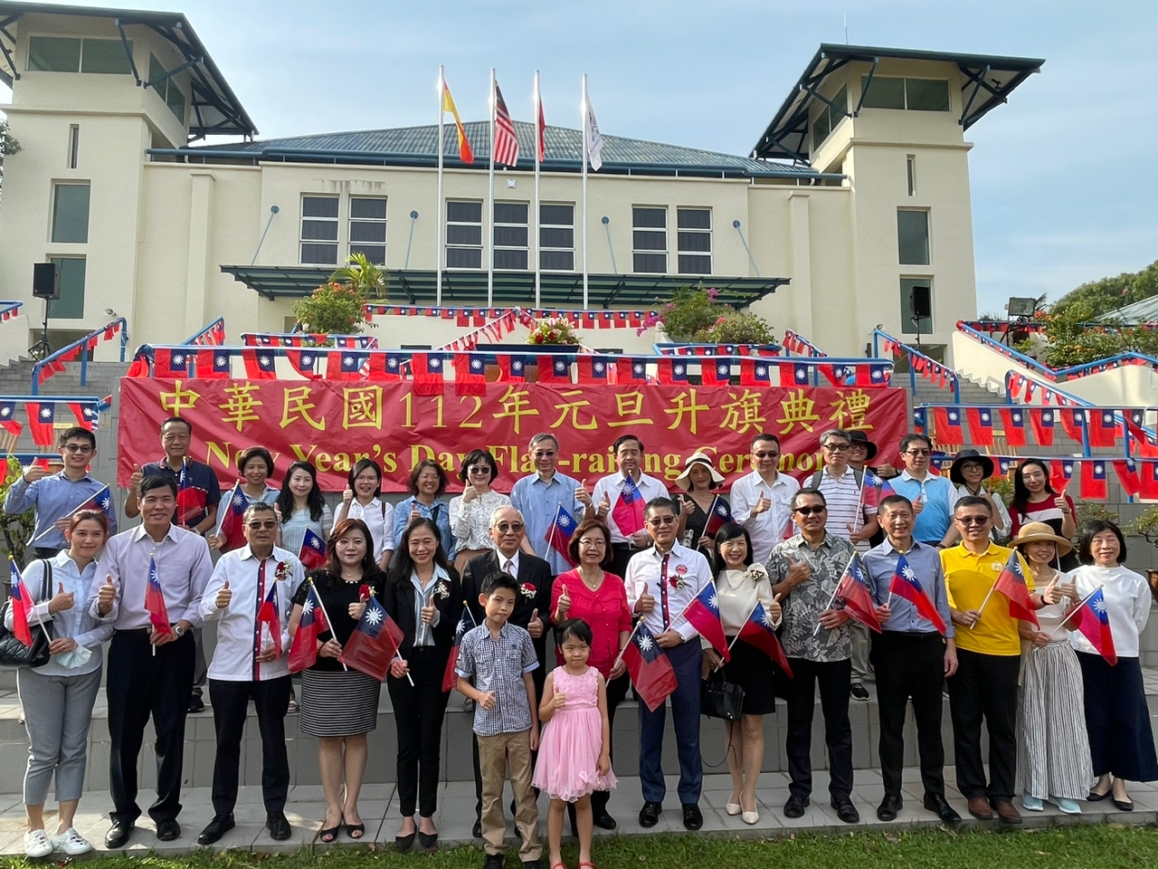 Representative Anne Hung and colleagues from the Taipei Economic and Cultural Office in Malaysia wish everyone a Happy New Year at the 2023 Chinese Taipei School Kuala Lumpur New Year Flag Raising Ceremony