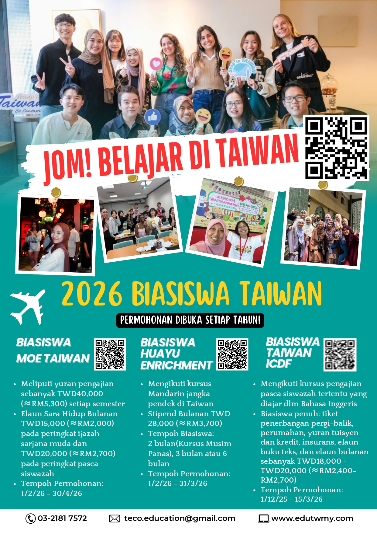 *Perkara yang tidak dinyatakan di sini akan dikendalikan mengikut " Taiwan Scholarship Program Guidelines" yang dipaparkan di laman web Taiwan Scholarship And Huayu Enrichment Scholarship Office.