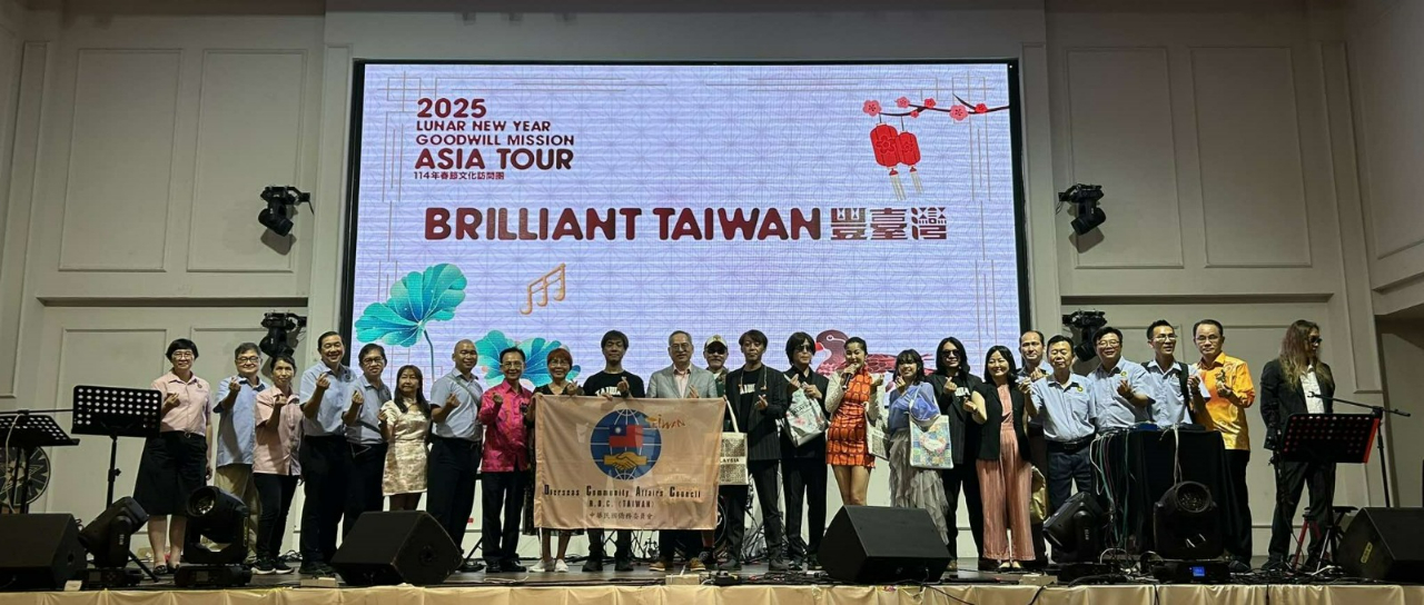Overseas Community Affairs Council (OCAC) " Goodwill Mission Asia Tour 2025" bertemakan "Brilliant Taiwan", penyanyi pemenang Anugerah Melodi Emas Sangpuy, penyanyi Hakka Huang Linyu, The Chairman Band dan banyak penyanyi membawakan lagu-lagu klasik Taiwan, Hakka, Cina dan orang asli Taiwan. 20 hingga 28 Februari, empat persembahan telah diadakan di Sabah Tenom, Johor Bahru, Muar dan Negeri Sembilan. Persembahan memang menarik, menarik hampir 4,000 penonton yang bergoyang-goyang dan menyelami keseronokan.