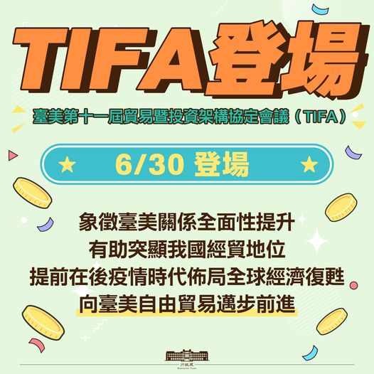 闊別五年,臺美第十一屆貿易暨投資架構協定會議(TIFA)即將於6/30登場。