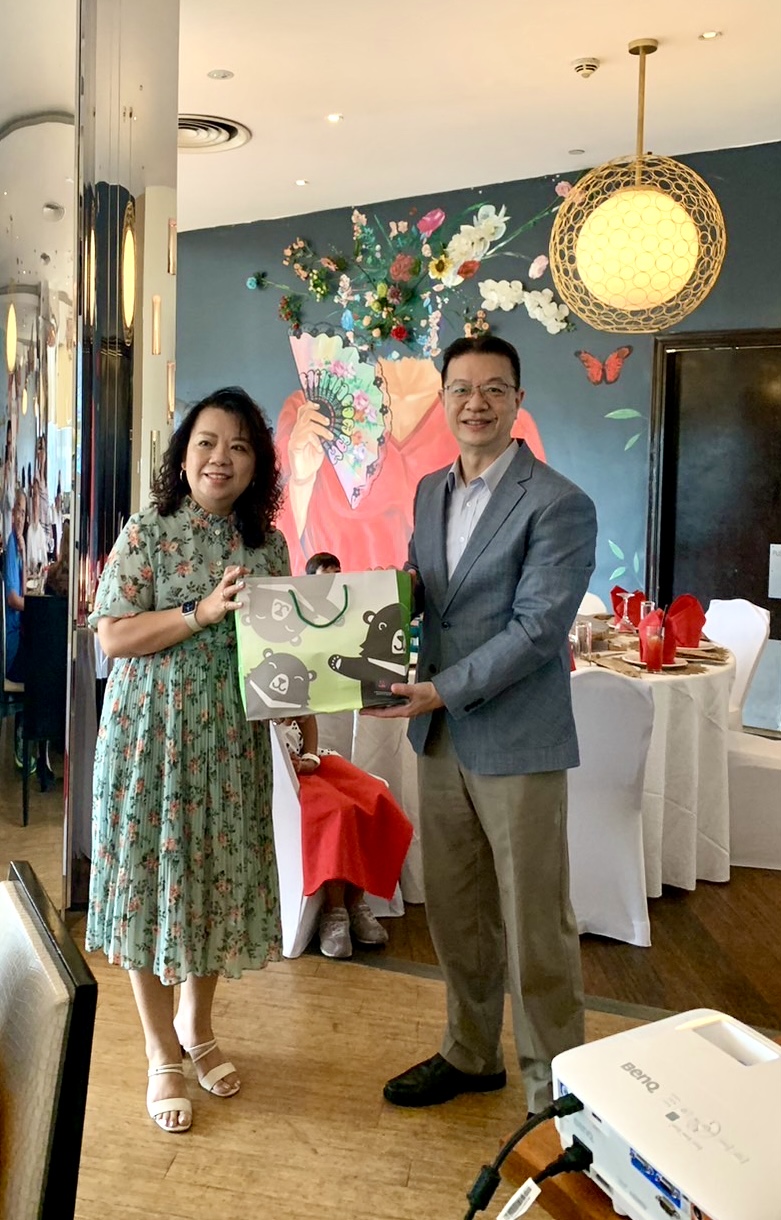 劉代表捐贈3份禮品作為此次餐會的抽獎禮品,席間,台商總會精心安排的賓果遊戲與卡拉ok,以及本處促請僑界共同參與本處臉書按讚等活動,讓全場歡笑不絕。