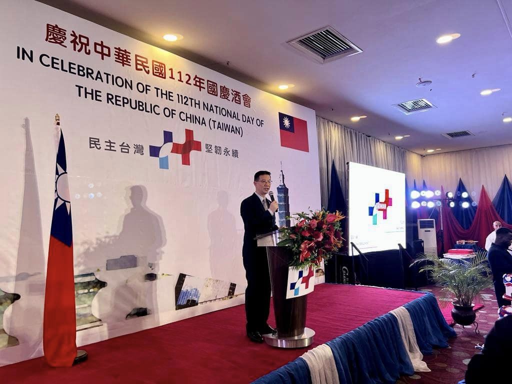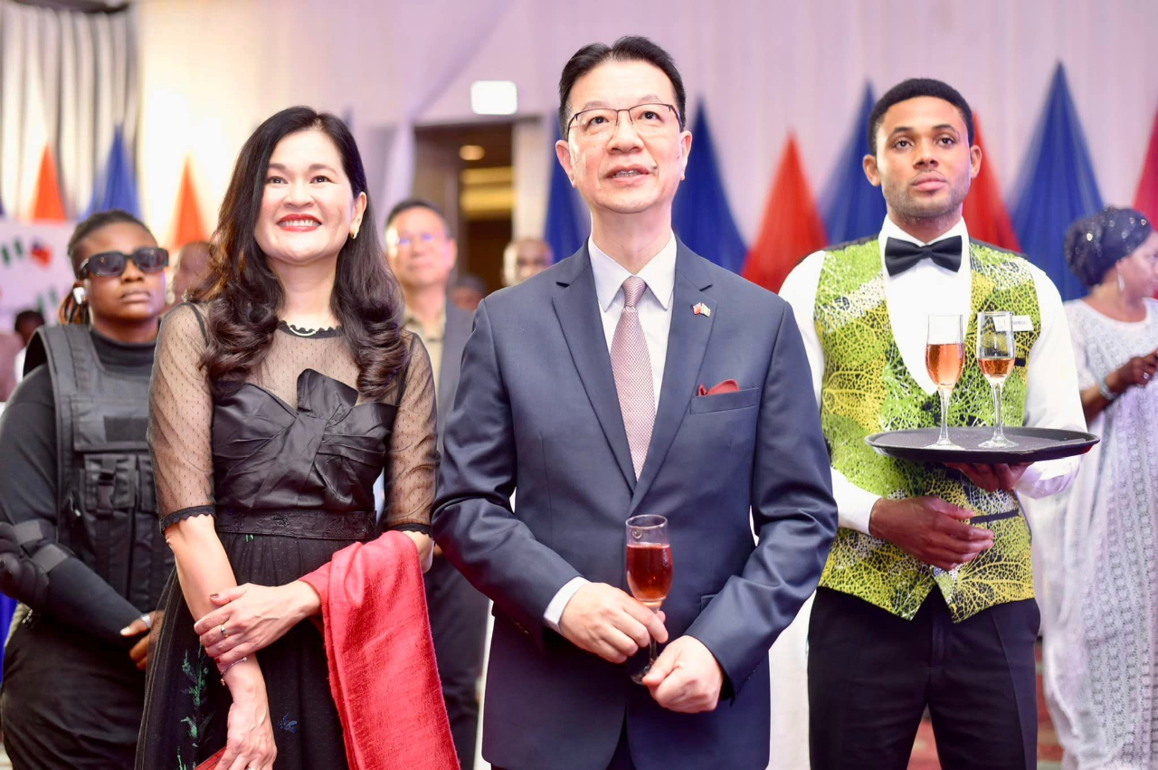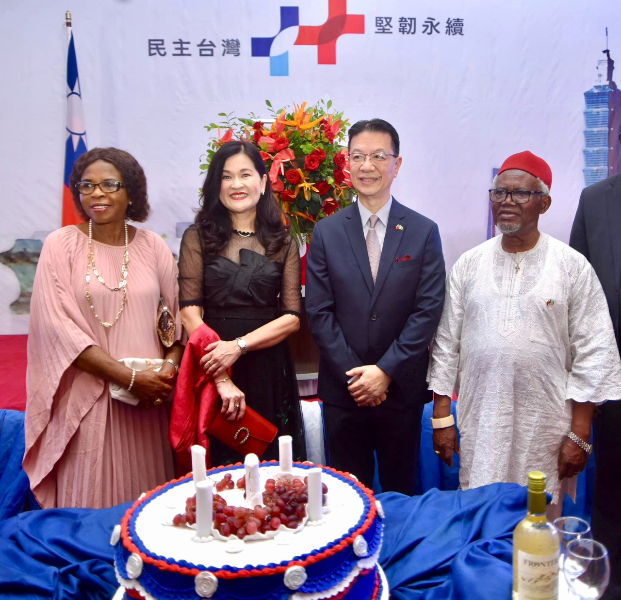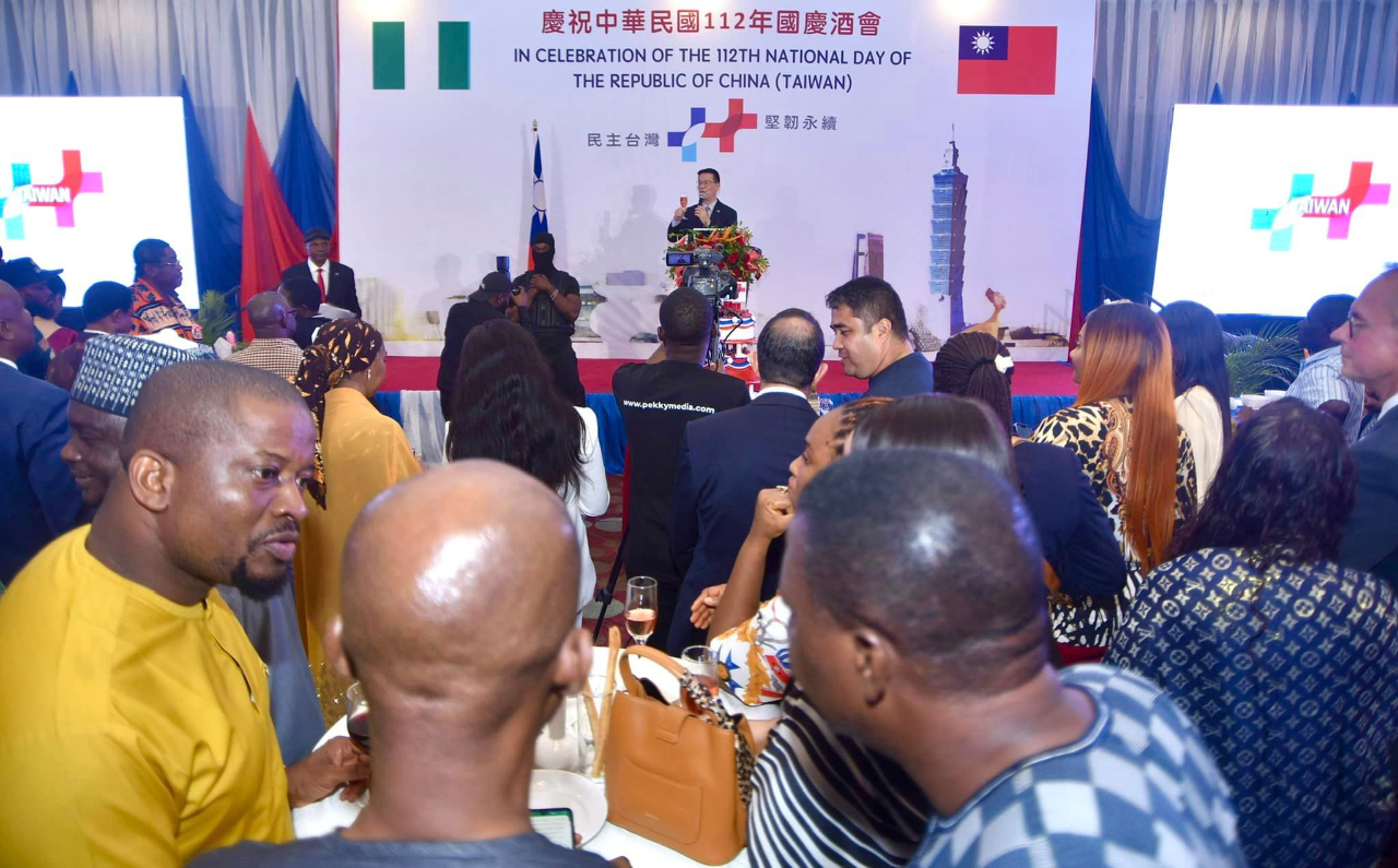 駐奈及利亞代表處劉翼平代表在今年10月4日主持了盛大的112年國慶酒會,奈國政經各界、多國駐使及留台校友會等230餘位貴賓應邀出席;多位奈國政要並致詞恭賀我國政經進步、民主自由,並將協力推動台、奈雙邊關係持續深化發展。 劉翼平代表致詞表示,台奈共同堅守民主核心價值,主權獨立且經貿與能礦發展更可互利互惠。奈國提努布總統曾宣布「將打造奈國東南部成非洲之台灣」,謹代表我政府予以最正面回應,並樂願與奈國政府通力合作,以實現提努布總統競選政見,發揮台灣優勢協助奈國發展。 劉代表夫婦並與奈國政要多位共同切國慶蛋糕,以表示同心恭祝我國運昌隆!