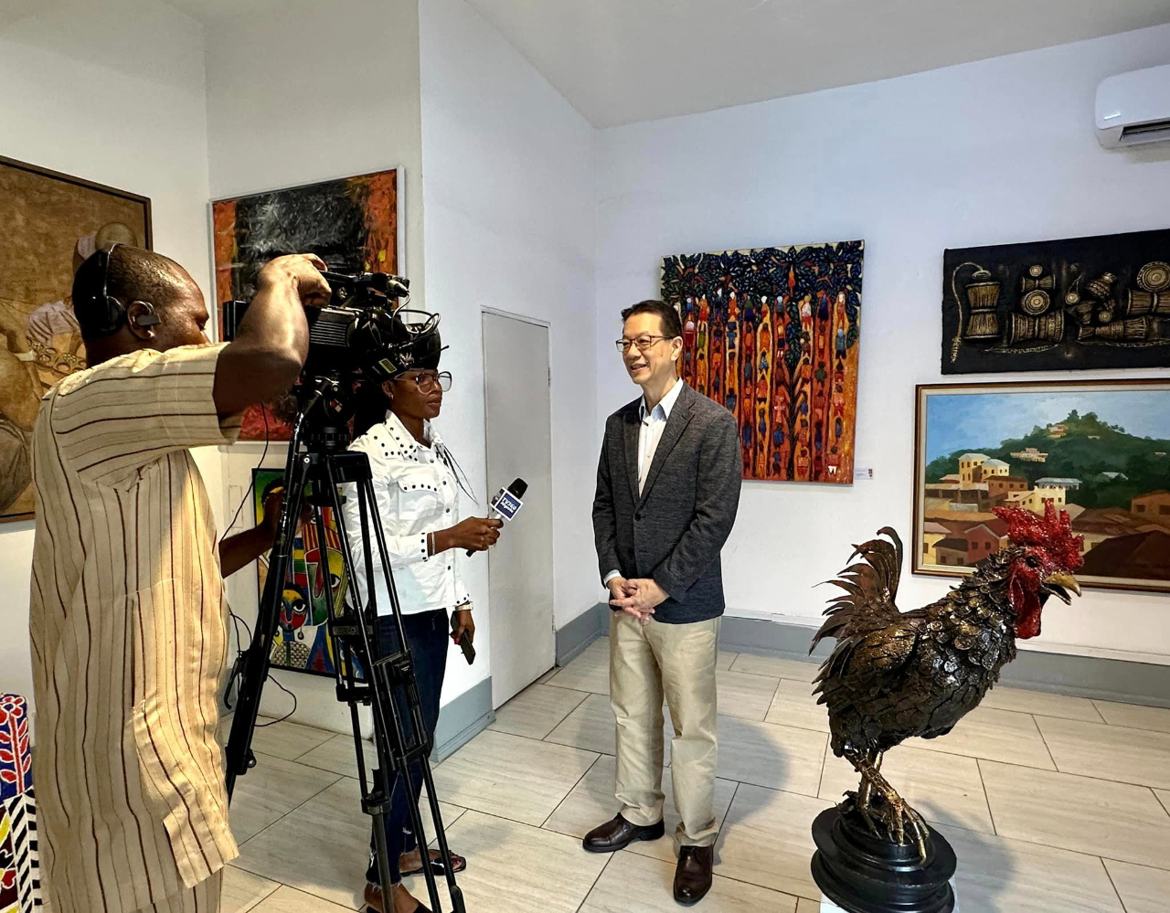 駐奈及利亞代表處劉代表翼平夫婦受邀出席奈及利亞藝術家協會(SNA)的拉哥斯與Ogun州分會以「Cross Currents」為主題所聯合舉辦藝術家聯展活動。第二場展出開幕是10月22日在拉哥斯Gemini 藝廄舉行,現場集合阿奈及利亞多位藝術家的雕塑、繪畫、圖像、版畫等佳作,呈現豐富多彩樣貌!