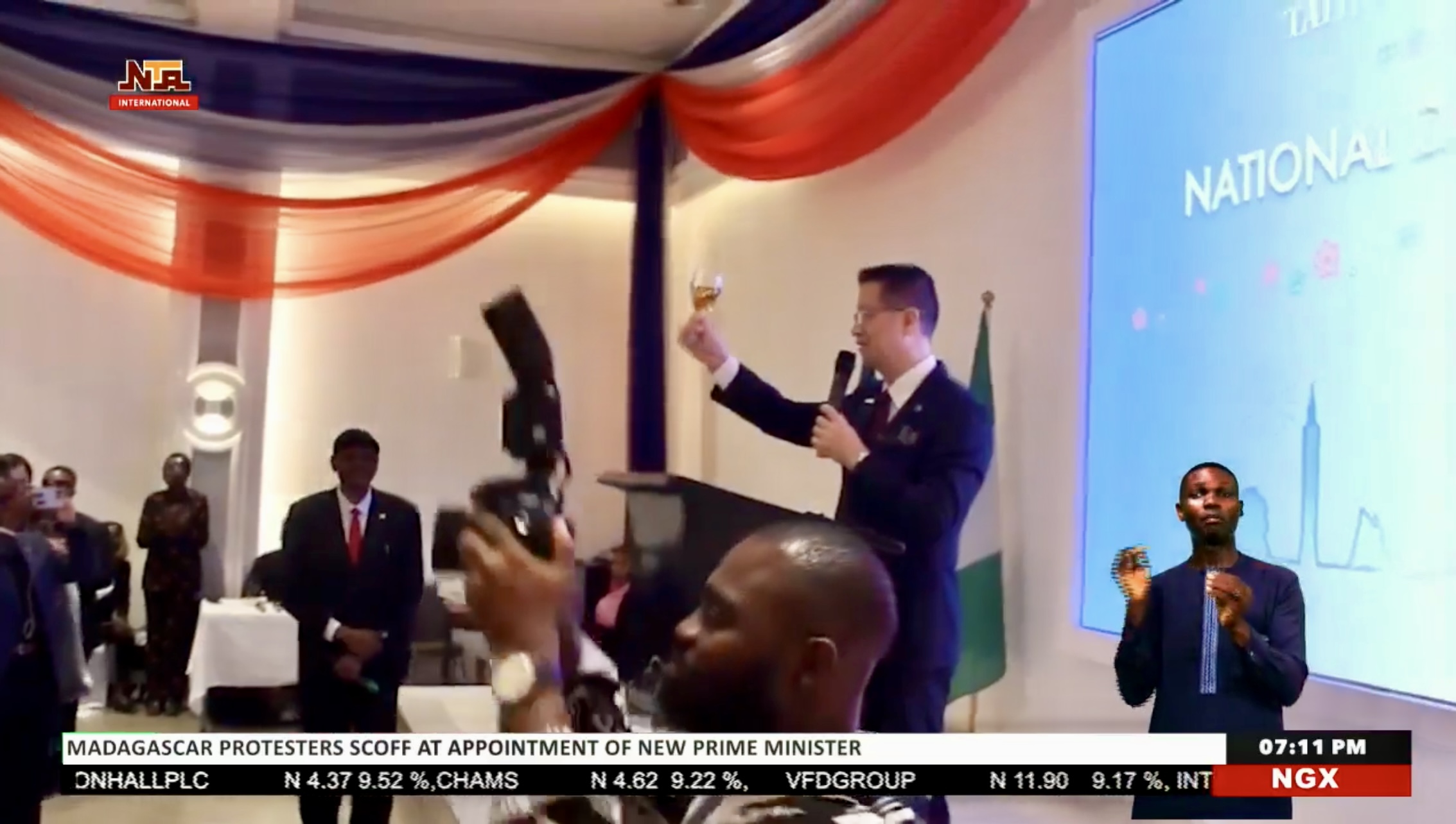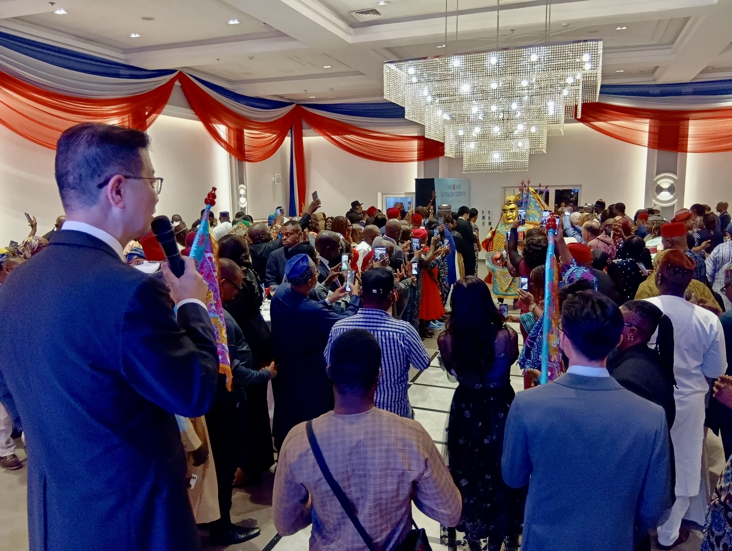 台灣駐奈利亞代表處為彰顯提振台奈雙邊關係,於2025年10月7日從現駐地拉哥斯市(Lagos)移赴奈國首都阿布加(Abuja)舉辦本(114)年國慶酒會;奈國政要、多國使節官員及各方貴賓230餘位蒞臨致賀。另奈國台僑界恭請兩尊電音三太子首度現身奈京,在酒會現場加持舞動,深受賓客熱烈歡迎。整體酒會場面隆重平和,氣氛愉悅融洽。