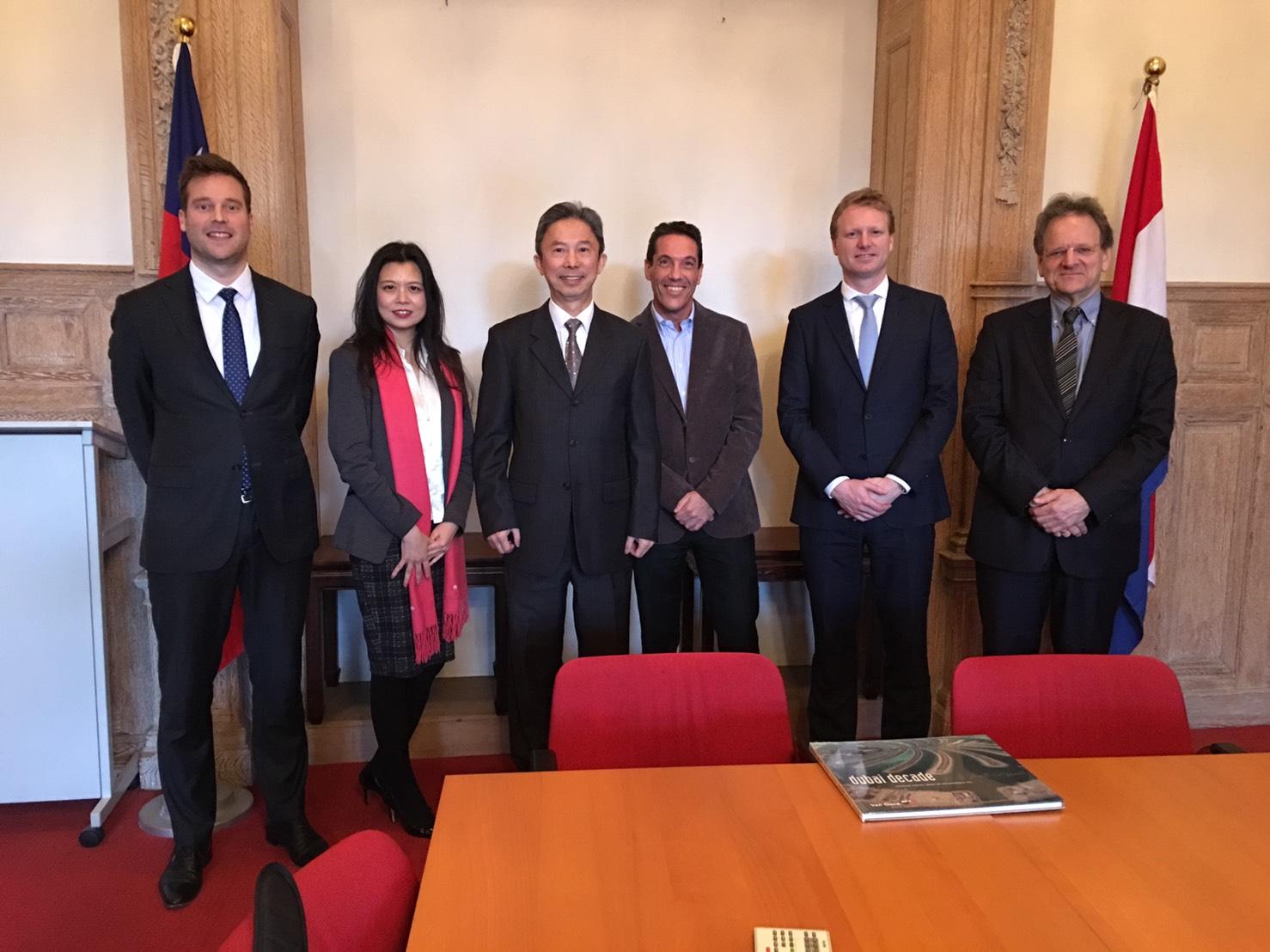 周台竹大使2017年2月21日與到本處拜會的荷蘭海事工程公司Van Oord人員合影。Van Oord獲高雄港務局合約,正進行高雄港疏浚工程,未來亦將投標台灣其他工程計畫。