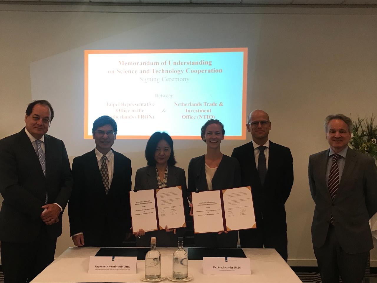臺荷科技合作備忘錄係由中華民國駐荷蘭臺北代表陳欣新與荷蘭創新科技處科技主管Anouk Van Der Steen在海牙簽署。