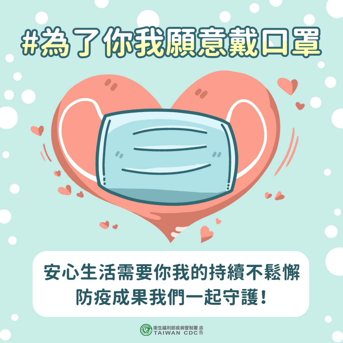 臺灣衛生福利部「為了你我願意戴口罩」宣傳海報