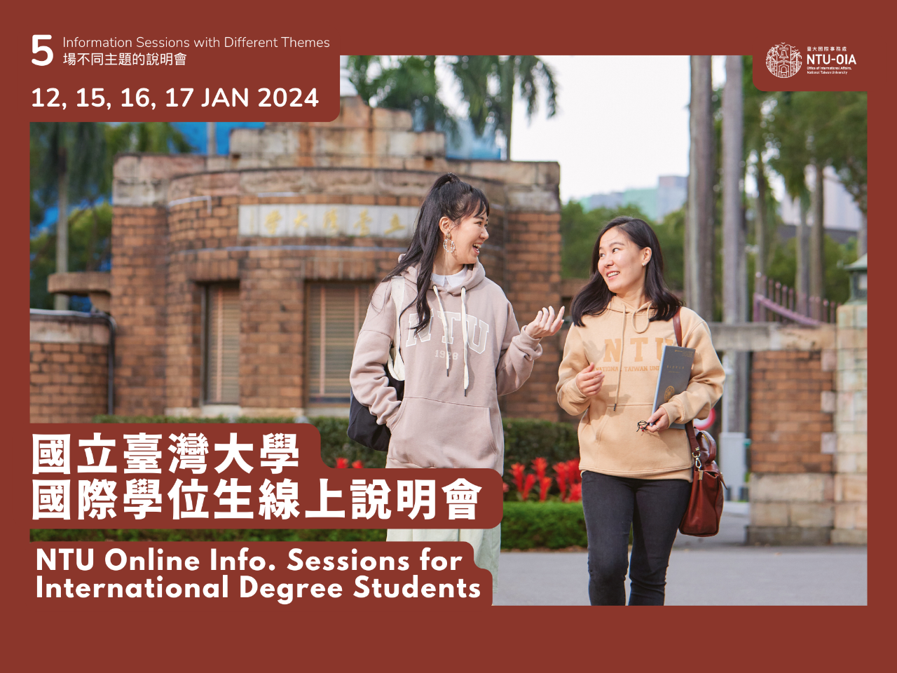 If you have any question regarding the online info sessions, please contact Ms. Vivian Fan at vivianfan@ntu.edu.tw.