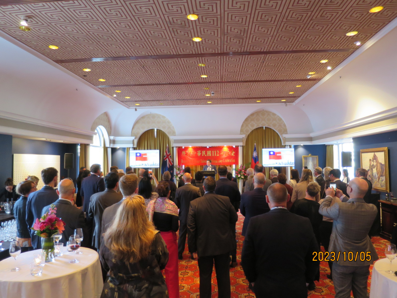 駐紐西蘭代表處10月5日於「威靈頓俱樂部」舉辦112年國慶酒會,計有國會議員、紐西蘭監察使及重要政、商、學、僑等各界人士近百人出席。為尊重當地傳統,歐大使江安特以毛利文開場及結尾。另刻值紐國大選之際,仍有國會議員Tim van de Molen排開選舉行程,親臨國慶酒會現場以示支持。此外,紐西蘭國會跨黨派友台小組共同主席Simon O’Connor議員亦特致函祝賀我國雙十國慶。國慶酒會歷時三小時,場面熱絡。