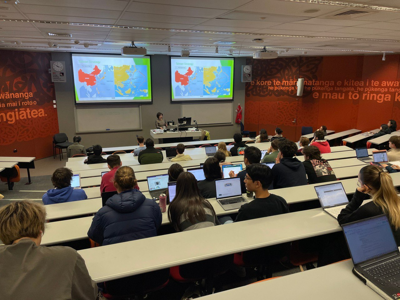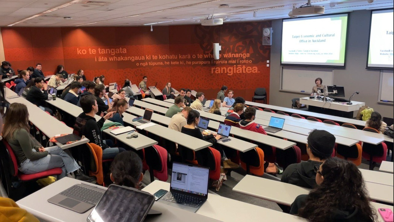 駐奧克蘭辦事處處長陳詠韶8月9日應邀赴奧克蘭大學課堂講述台灣重要性,從經濟、科技、戰略安全丶民主等面向說明台灣在區域與全球的重要角色,及台灣面對中共軍事、外交丶經濟丶灰色地帶等威脅所展現的韌性,呼籲各界明辯中共扭曲聯合國2758號決議案及以其「一中原則」企圖混淆各國「一中政策」之圖謀,並接受學生提問。
