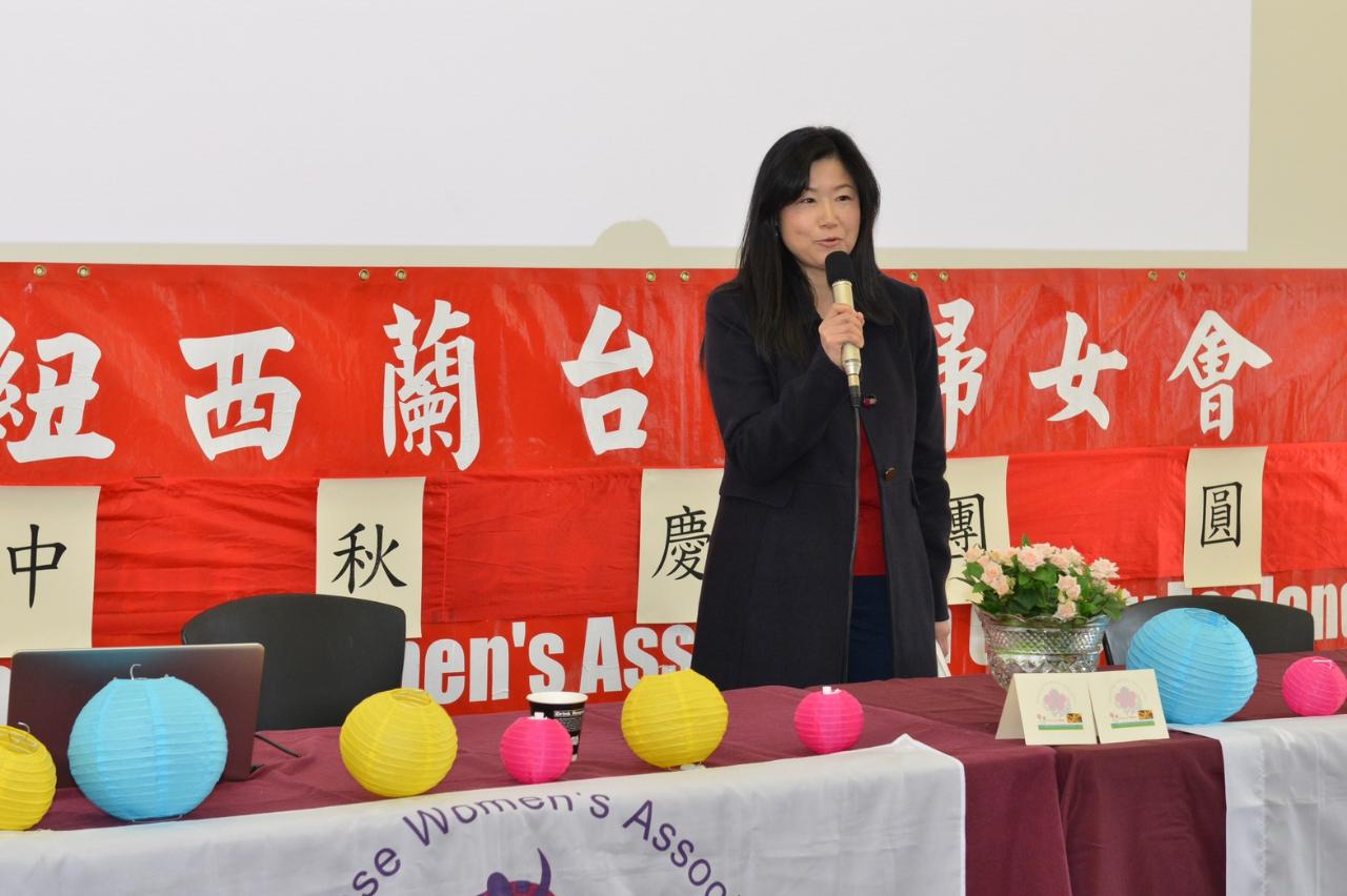 劉永健處長9月13日應邀出席紐西蘭臺灣婦女會中秋節聯歡活動,祝福大家佳節愉快,及與會長黃瑪美、僑務諮詢委員施郭鳳珠等僑領交流。黃會長特別邀請劉處長夫人張家鑫女士主講駐外生活甘苦談,分享各駐在地生活特色,及駐外人員工作挑戰。大會安排李曜老師現場揮毫及燈籠題字,贈送與會嘉賓,歡度中秋。