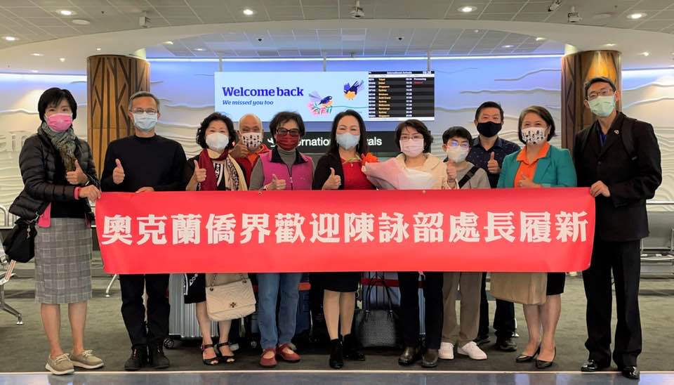 駐奧克蘭台北經濟文化辦事處新任處長陳詠韶於本(3)月25日上午飛抵奧克蘭履新,在奧克蘭國際機場受到僑務榮譽職及奧克蘭台灣僑界代表的熱烈歡迎。陳處長感謝僑界領袖與代表特別撥冗專程前來歡迎的盛情,相信在僑界先進鼎力襄助及歷任處長打下的堅實基礎下,各項重要工作將持續邁前推動。處長履新