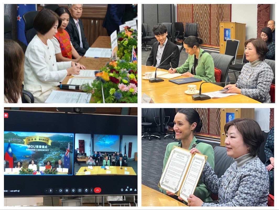 On August 7th, Pingtung County Magistrate Chou Chun-mi and Rotorua Mayor Tania Tapsell signed a friendly cooperation and exchange memorandum via video conference. Director General Kendra Chen from TECO in Auckland and Taiwanese compatriots from Rotorua were present as witnesses. Pingtung County and Rotorua are similar in size and both boast vibrant tourism and agricultural industries, as well as rich ethnic cultures and scenic landscapes. Following the signing of the MOU, both sides will work to promote collaboration in areas such as Austronesian ethnic cultures, educational exchanges between schools, and sustainable urban development.
