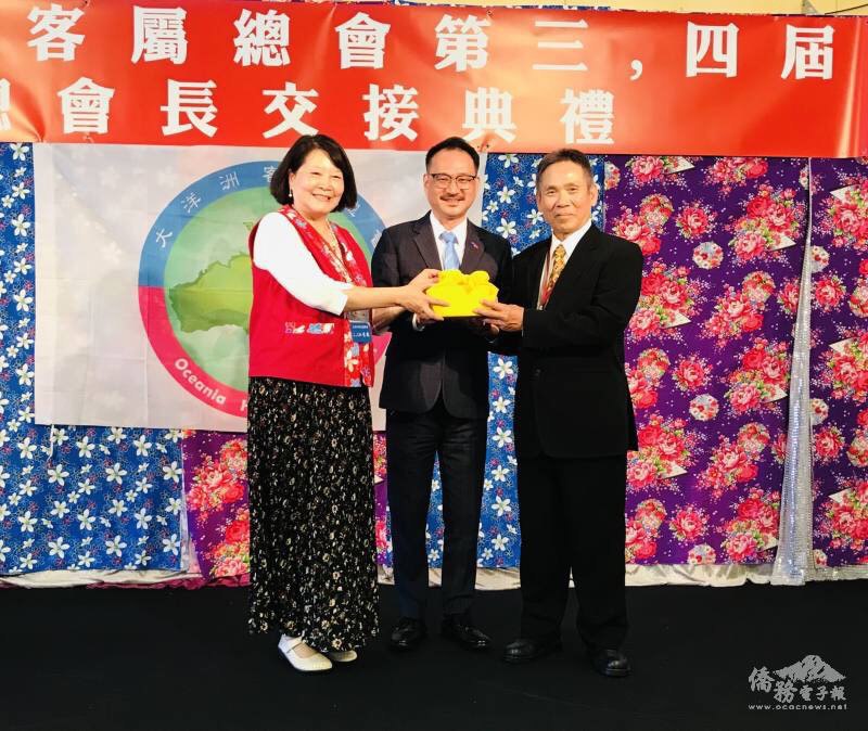 The 3rd/4th President Handover Ceremony of the Oceania Hakka Federation was held on December 14. The 3rd President handed over the seal to the 4th President, Jiang Wentong, who is also the President of the Hakka Society of New Zealand. Ambassador Joanne Ou of TECO in New Zealand, Director General Kendra Chen of TECO in Auckland, Division Director for Overseas Community Affairs Council Chiu Ya-fen, Overseas Community Affairs Council Member Jerry Shih, other honorary overseas community officials, leaders of Taiwanese organizations, and over a hundred representatives from member bodies in Australia attended the ceremony as guests.