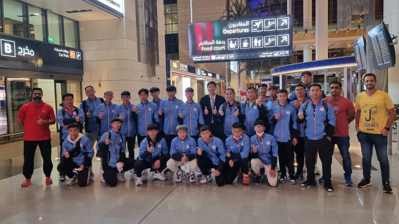 111年12月31日我國好手赴阿曼參加2023年男子青年亞洲盃曲棍球錦標賽,吳公使清泉與代表隊成員合影。