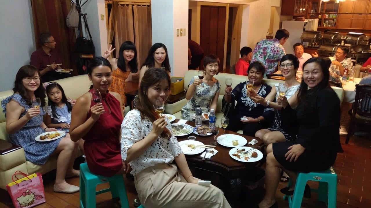 雷蒙傑索總統夫人(右3)及周大使夫人(右4)與臺商家屬餐敘