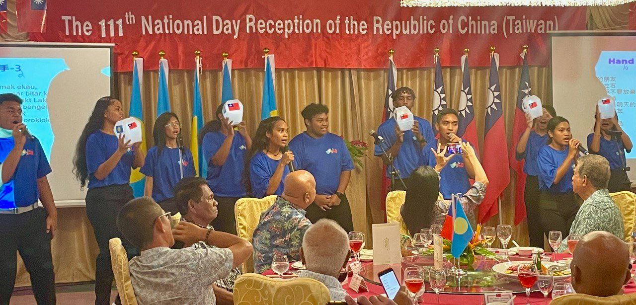 本年國慶酒會邀請帛琉高中15位學生以中文及帛琉文演唱「手牽手」,歌曲係由我國派駐帛琉華語教師之教學,本年8月我國際青年大使訪帛期間曾共同演唱,象徵台帛友誼;隨即黎大使頒發給帛琉學生2022年全球華語朗讀比賽獎,彰顯我在帛琉推動教育文化之成效。