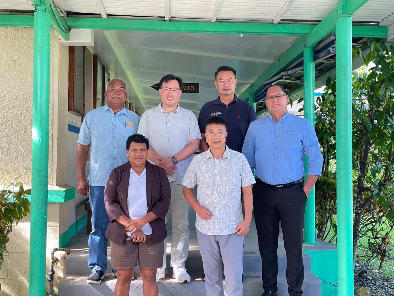 S__63971367鄭署長及彭教授拜會帛琉社區大學(PCC)與校長Dr Patrick Tellei、駐帛琉大使館副參事張水庸、帛琉奧會(PNOC)主席Frank Kyota及秘書長Baklai Temengil合影