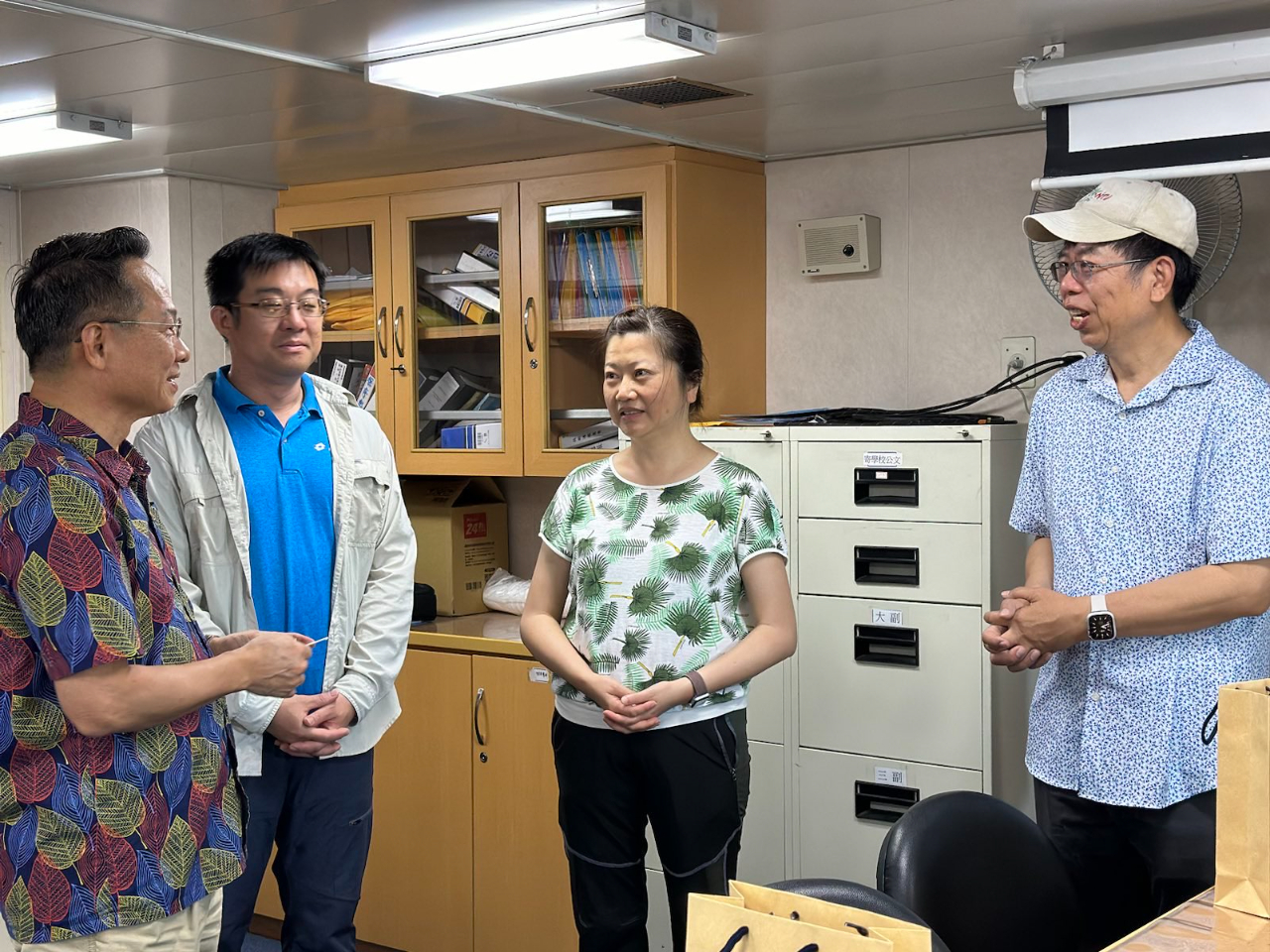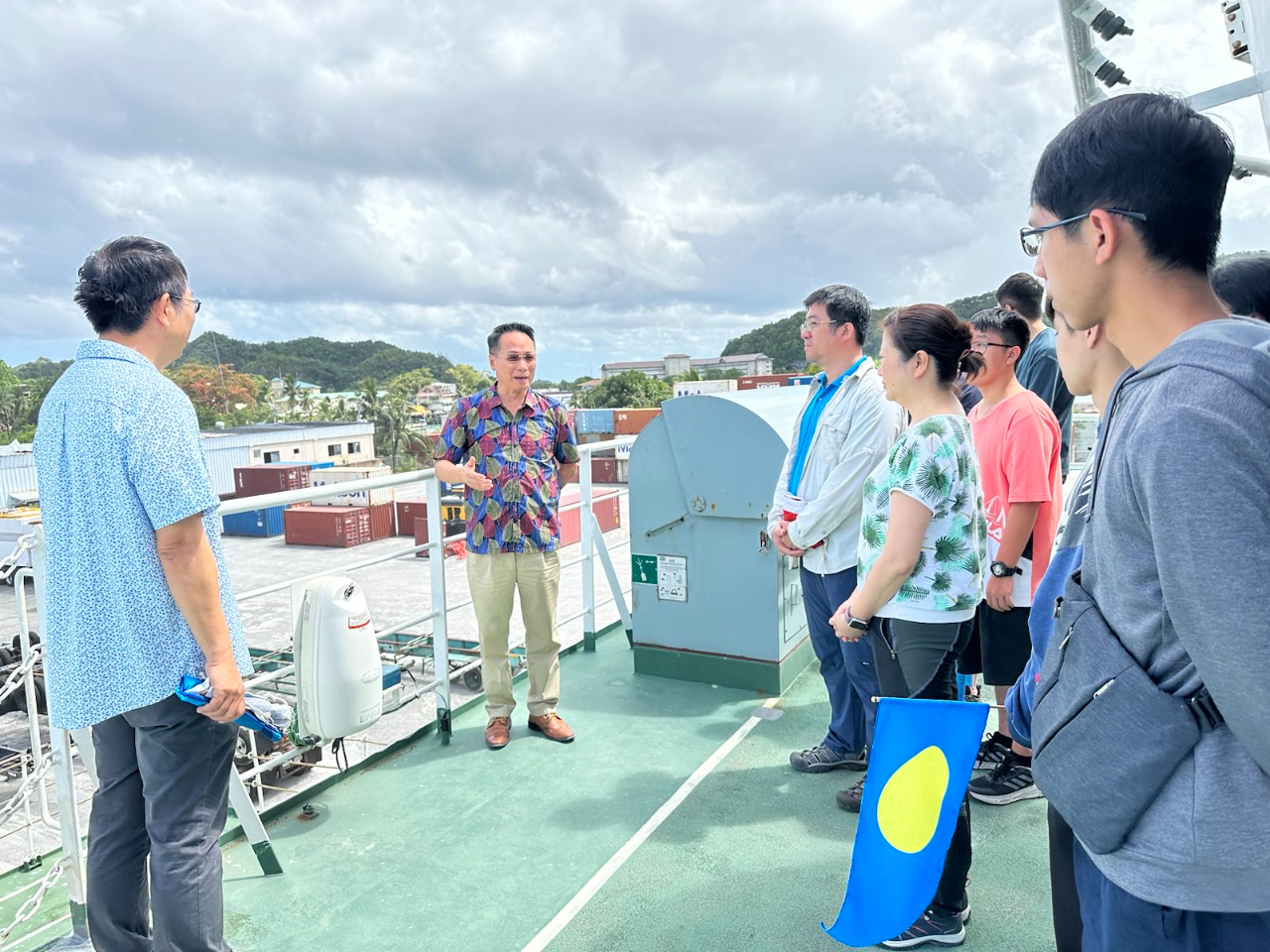 由台大詹森教授及楊穎堅教授率領的「新海研一號」團隊約40人,執行多樣海研任務,並將在返台期間繼續執行包含海洋地質探勘及氣象觀測等多項海洋研究計畫。「新海研一號」為完全由我國自行設計、研造之船艦,很高興它能到訪帛琉,期待有更多台帛間的海洋合作!