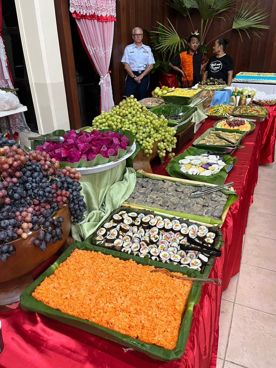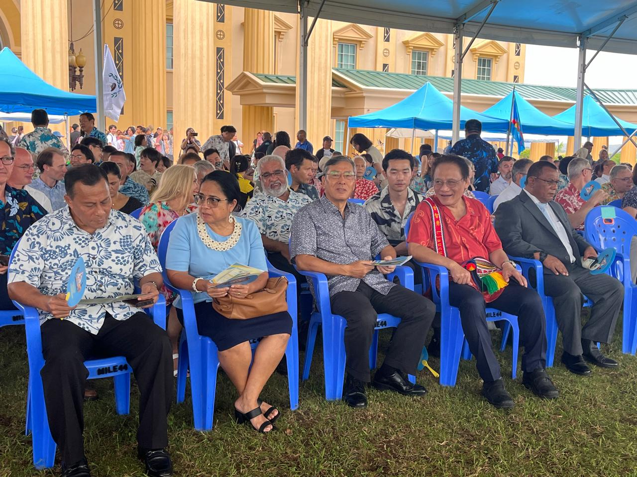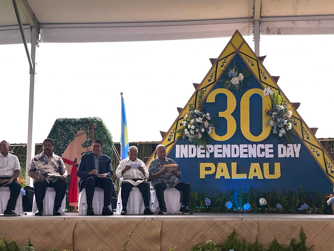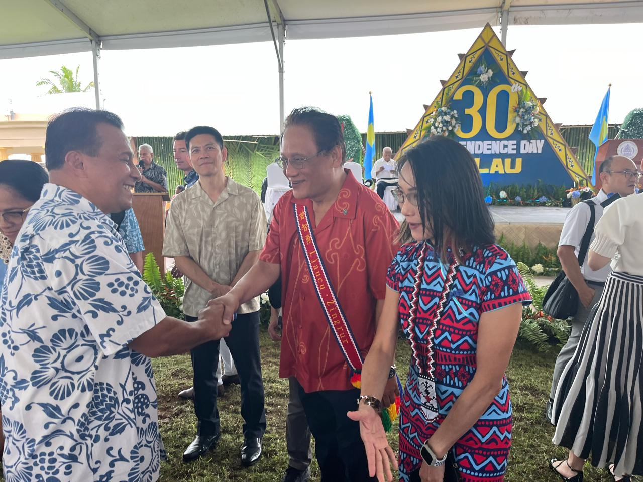 10月1日曾特使與美國、日本、澳洲、紐西蘭等計30國代表共同出席帛琉共和國30週年獨立紀念典禮,帛琉眾議長薩賓諾(Sabino Anastacio)致詞時,感謝來自各國的好朋友共襄盛舉出席今天的典禮,對各國在相關領域提供帛琉協助表示感謝,其中包括中華民國台灣;總統惠恕仁(Surangel Whipps Jr.) 特別介紹代表賴清德總統的曾智勇特使,指出在帛琉獨立30周年之際,來自全球30個國家代表不遠千里與帛琉共同歡慶重要時刻,他備感榮幸。帛方代表隨後中宣讀賴總統賀詞,氣氛莊嚴隆重。另大會司儀在介紹娜魯灣舞團入場時指出,1994年帛琉獨立時,曾邀請娜魯灣舞團在國慶上演出,30年後的今天,再度邀請娜魯灣舞團演出,象徵兩國的深厚情誼。娜魯灣舞團的表演成為各國貴賓的焦點,演出後,惠總統特別邀請曾特使、駐帛琉大使館黎倩儀大使及原民會所有團員一同合影。慶祝典禮後,曾特使參訪來自帛琉16州的傳統特色攤位,並品嘗帛琉傳統美食,進一步瞭解帛琉風土民情