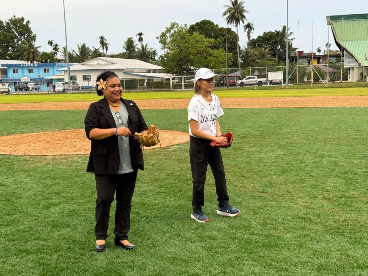 今天的比賽由中華民國(台灣)駐帛琉大使黎倩儀與代表惠恕仁總統出席的帛琉司法部長 Jennifer Olegeriil ⚖️ 共同為友誼賽開球。