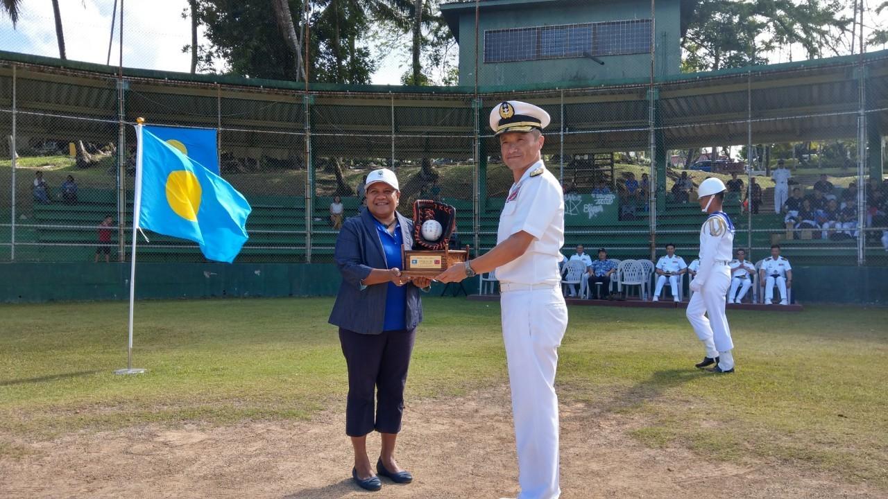 Rear Admiral Chen donated a set of softball equipment to Minister of Community and Cultural Affairs, Baklai Temengil-Chilton for Palau softball team.