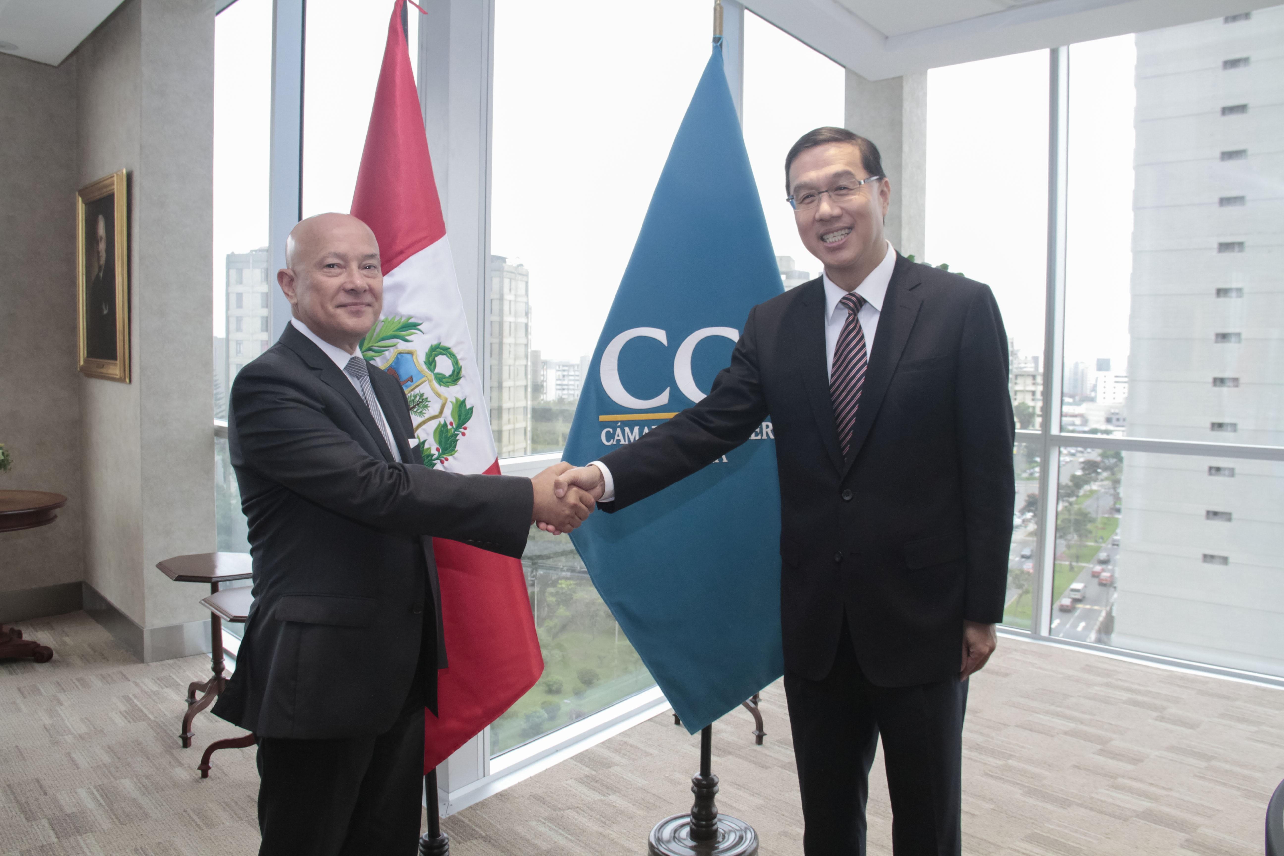 本處曹大使立傑偕經濟組謝組長秀萍、許秘書博翔應利馬商會(Camara Comercio de Lima) 主席Jose Mario Mongilardi Fuchs邀請,於本(106)823日在商會設宴歡迎曹大使抵秘履新。曹大使表示歡迎利馬商會推薦所屬會員組團赴台觀展採購或參展拓銷。雙方均允將持續深化雙邊經貿交流。