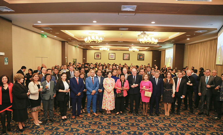 今年的國慶酒會恢復在旅秘傑出企業家鄧伯良先生經營的希爾頓花園酒店舉辦,現場播放本年「眾志成城 台灣向前」國慶影片,增進秘魯各界對我國去年卓越發展的完整認識並凝聚其對台友誼。