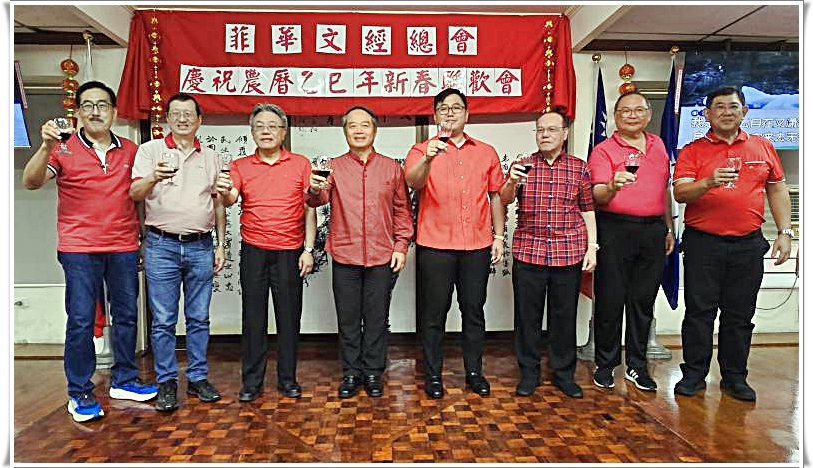 菲華文經總會(文總)於2月2日中午在馬尼拉市華人區的會所自由大廈舉辦「2025年新春聯歡餐會」,本處周民淦大使、楊登仕公使及本處人員應邀出席,共同慶賀乙巳蛇年的到來。文總由輪值常務委員丁俊峰僑務促進委員主持聯歡餐會,出席貴賓都身著紅色服裝出席,場面喜氣洋洋。