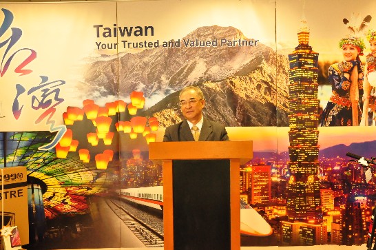 Ambassador Gary Song-Huann Lin delivers his congratulatory remarks to the winners of the “Together We Can: Watch a film and win a prize contest” during the Prize Presentation Ceremony on January 22, 2015 at TECO’s Conference Room.