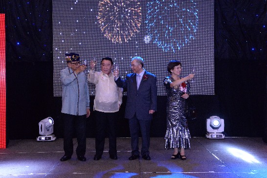 Representative Lin proposed a toast to Taiwan and the Philippines friendship, progress and everlasting prosperity, with former Philippine President Fidel V. Ramos, MECO Chairman Amadeo Perez Jr. and Madame Sophia Lin. (from left to right)