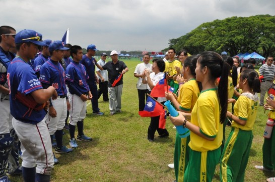 Taiwan Team meets with their cheering group prior to the start of the games - 2013 Little League Asia-Pacific Regional Tournament