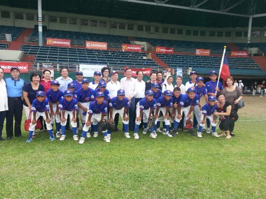 Minister Samson T.L. Chang with Team Taiwan - 2013 PONY International Asia-Pacific Bronco Division Championships - 13 July 2013 - 3.jpg